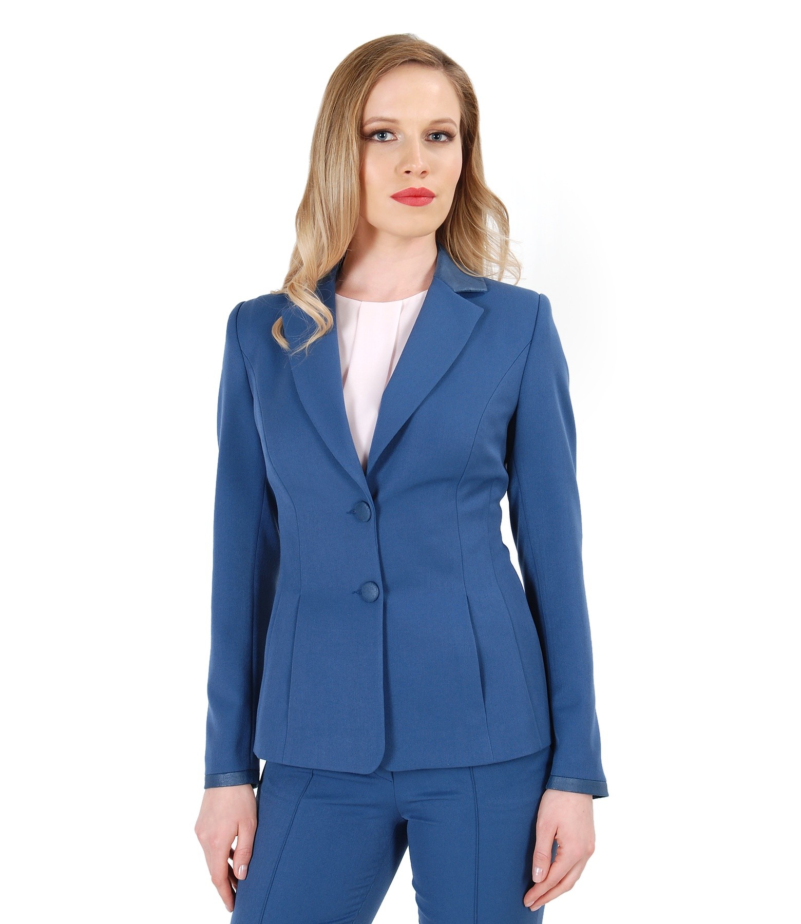 Office jacket with pockets and faux leather trim (Metallic blue), size