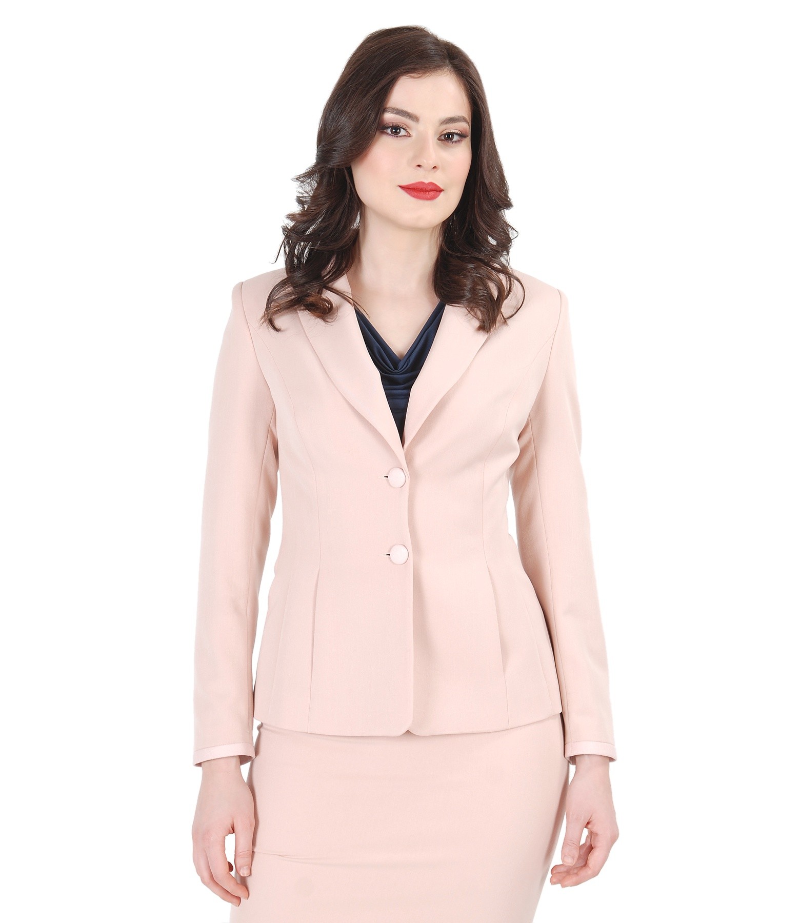 Office jacket with pockets and faux leather trim (Nude pink), size