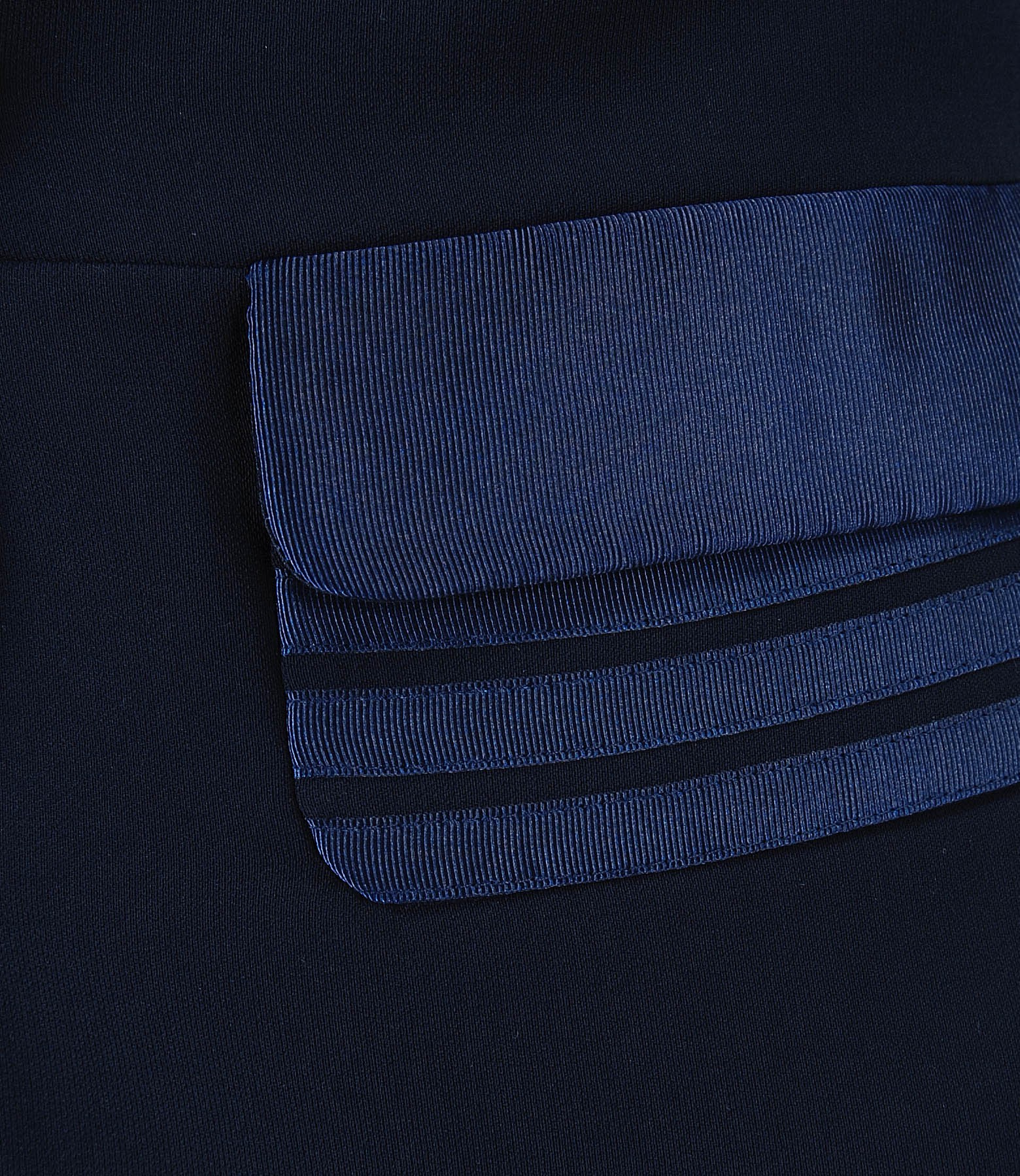 Office jacket, coated, with collar and rounded lapels, with two waist flaps. Closes with a front button.