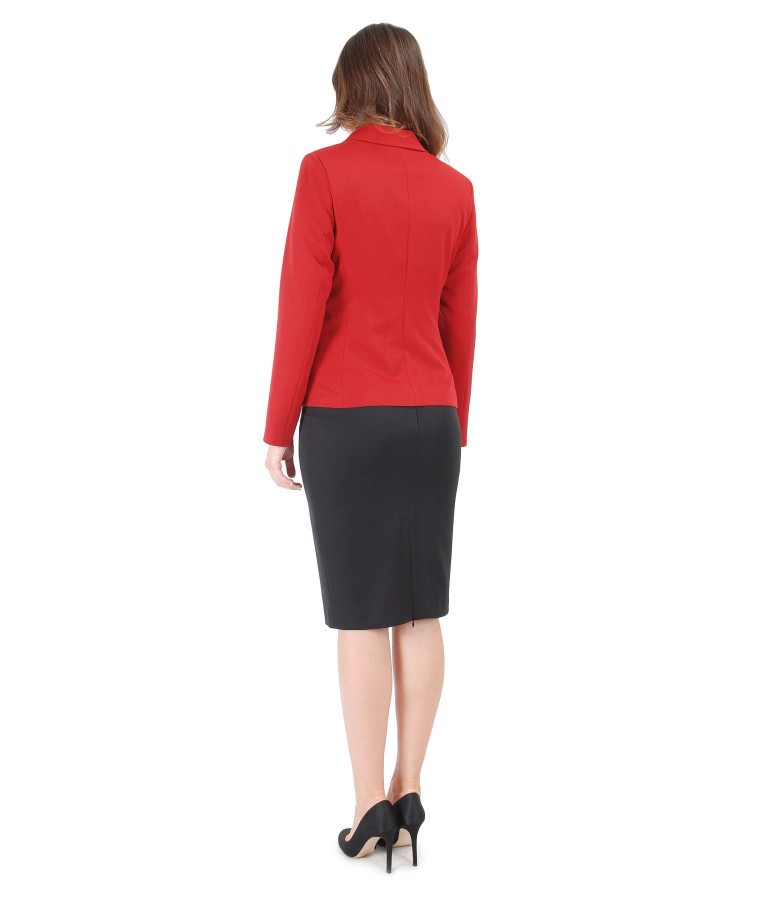 Elastic fabric jacket, with deep low-cut neck, pockets with welt pocket and side metalic zippers.