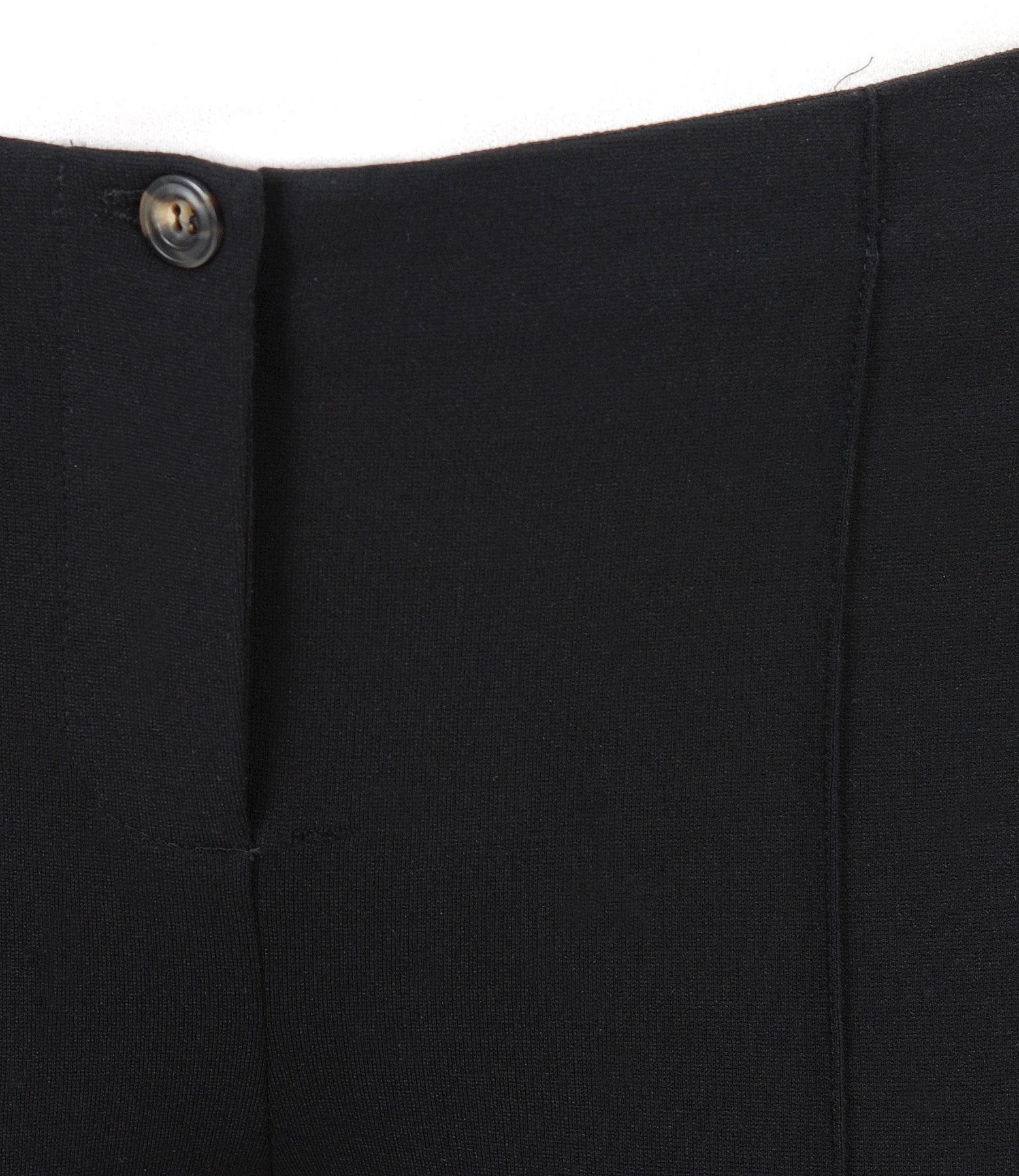 Office pants made of elastic jersey, with elastic waist and sewn stripe. Closes with hidden zipper and a front button.