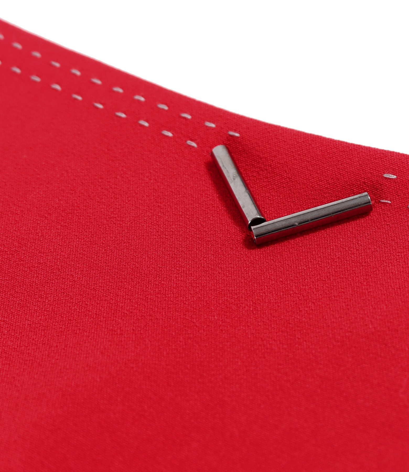 Office skirt made of elastic fabric with viscose, lined, with decorative stitching in contrast and an ornament at the waist. It has a slit in the middle of the back. It closes with a hidden zipper in the middle of the back.