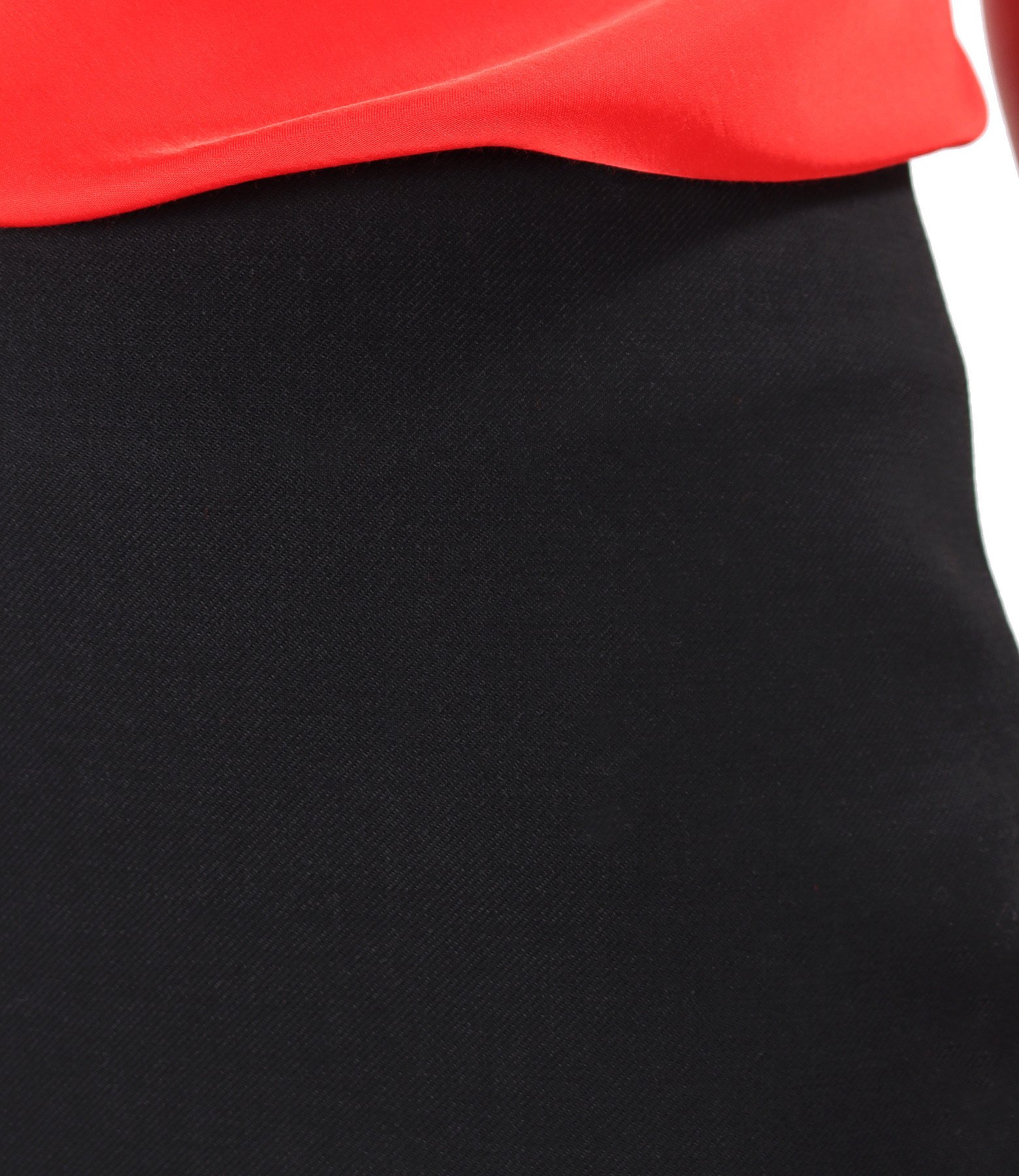 Office skirt made of elastic fabric with wool, lined, with a slit at the center back. It closes with a hidden zipper at the center back.