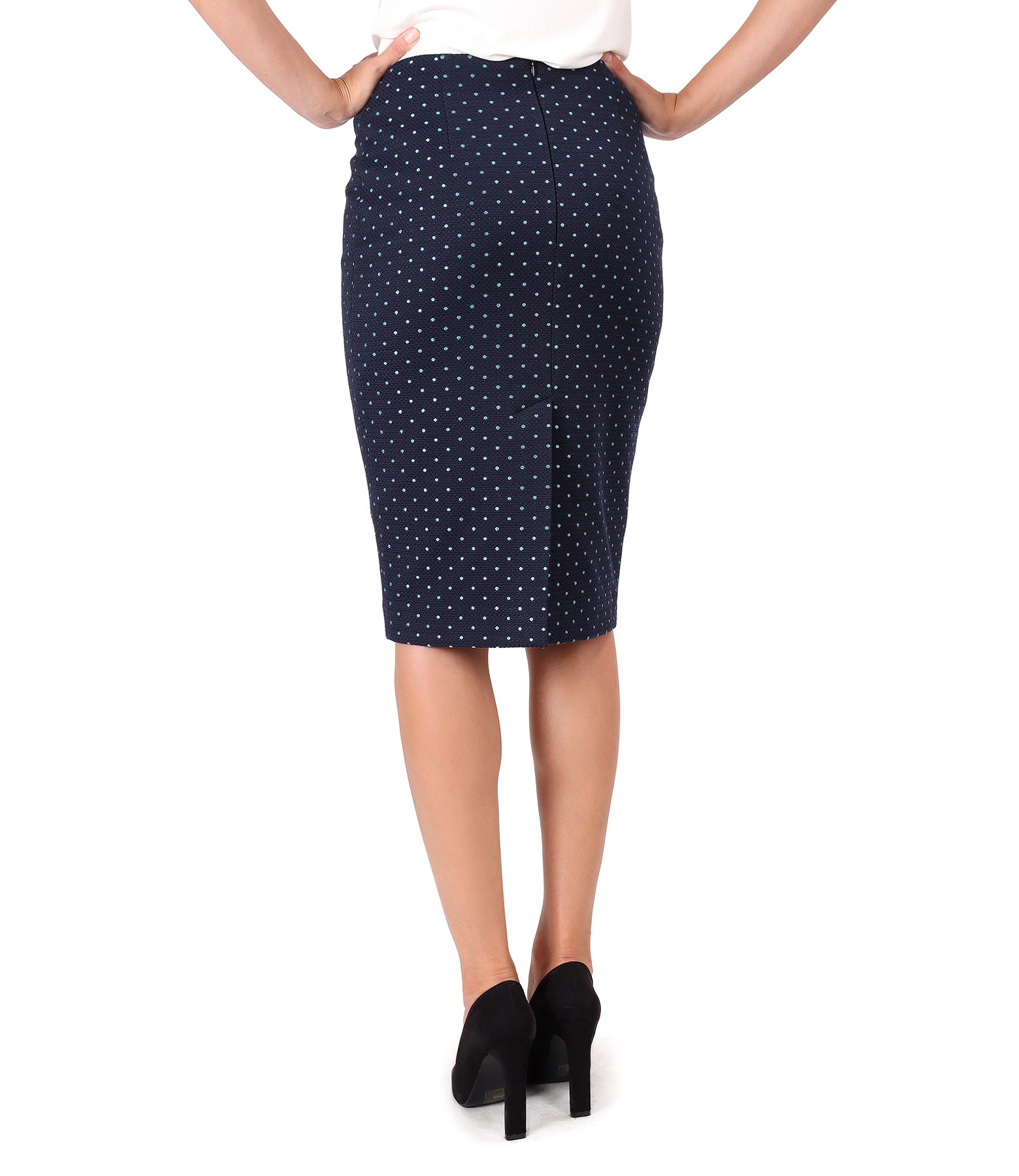 Office skirt made of printed cotton, padded with slits on the middle back. Closes with hidden zipper on the middle back.