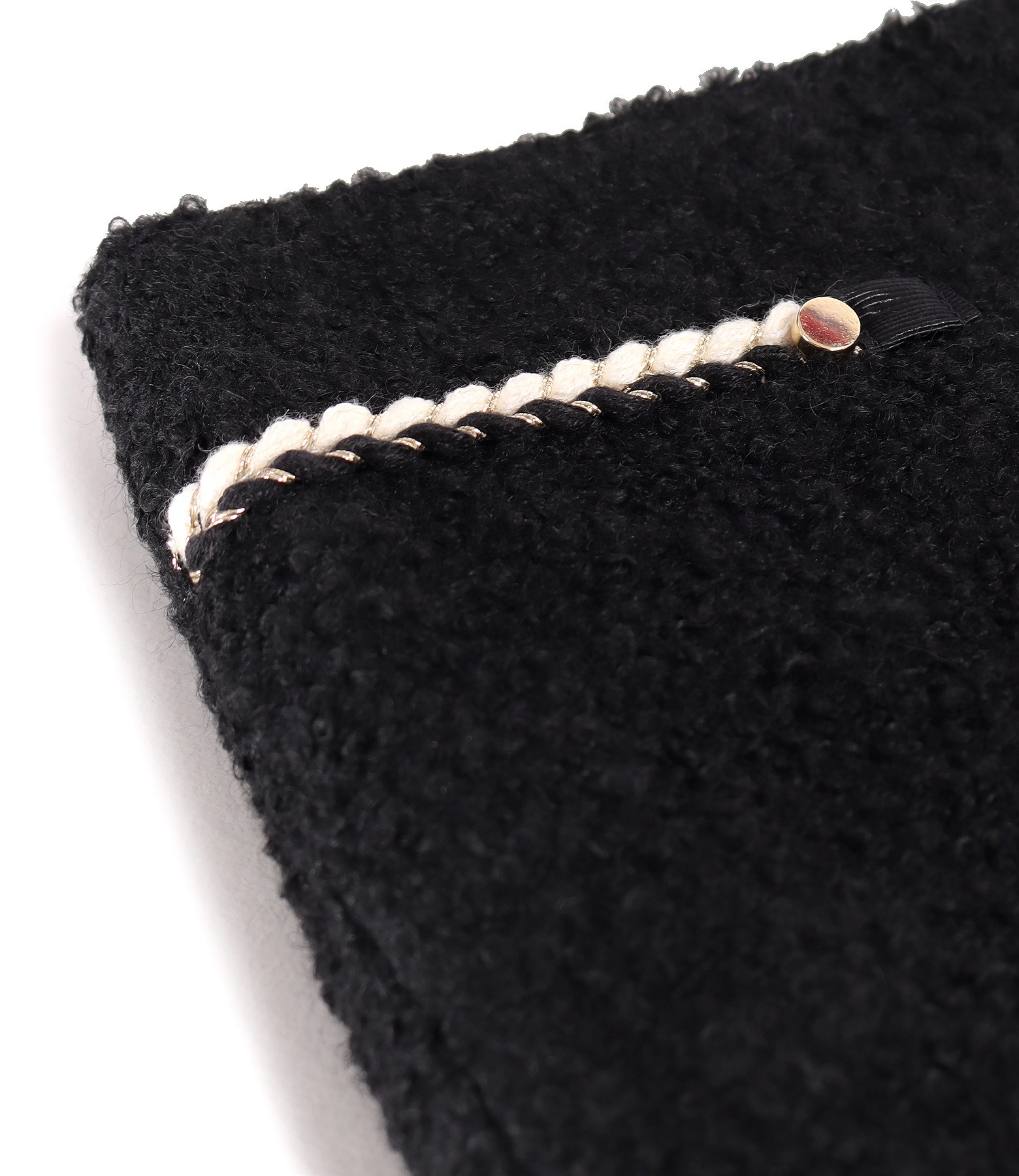 Office skirt made of wool, lined, with front trim and slit on the middle back. It closes with a hidden zipper in the middle of the back.