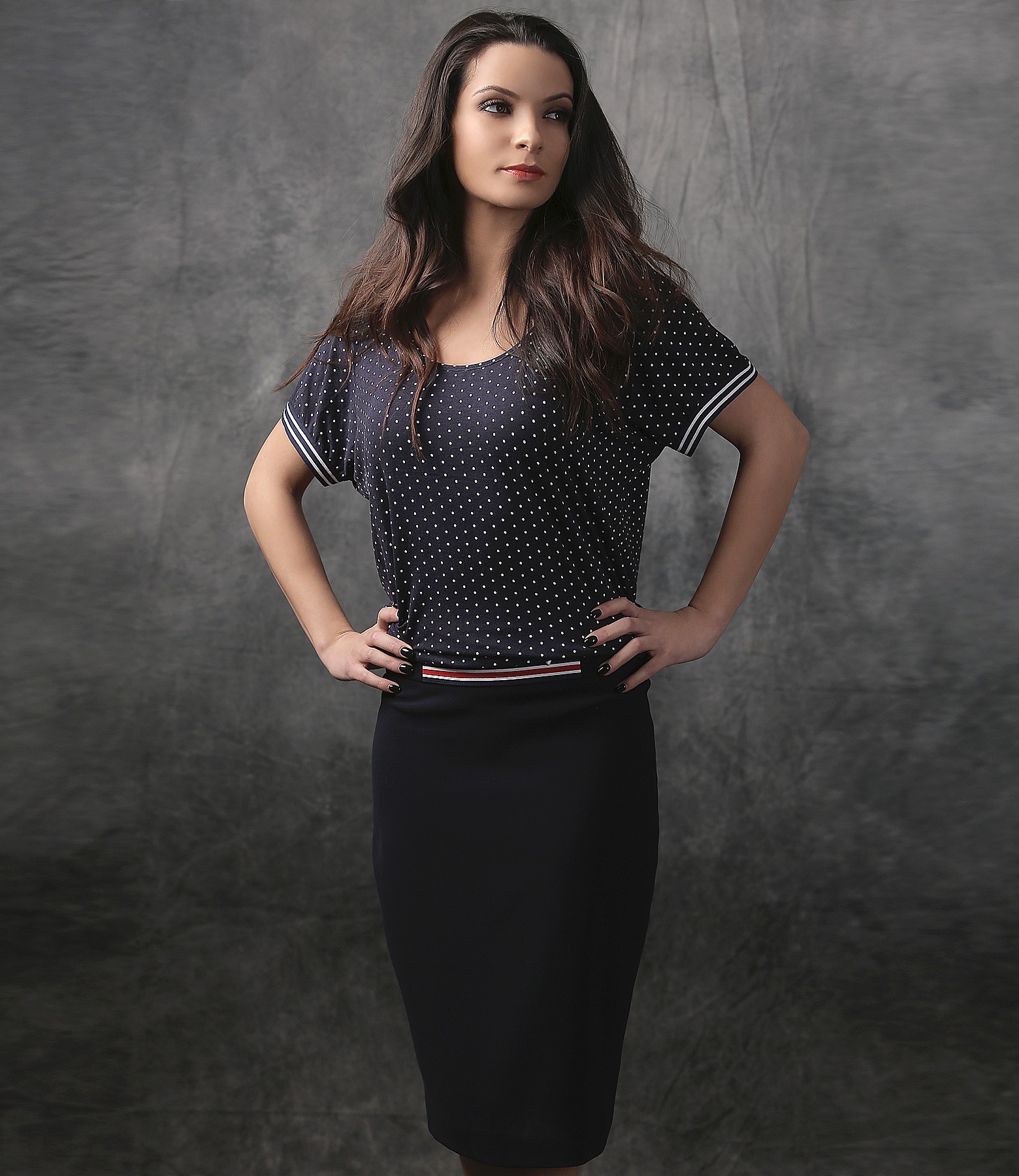 Conical skirt, coated, with multi-color elastic and slit on the middle back. Closes with hidden zipper in the middle back.