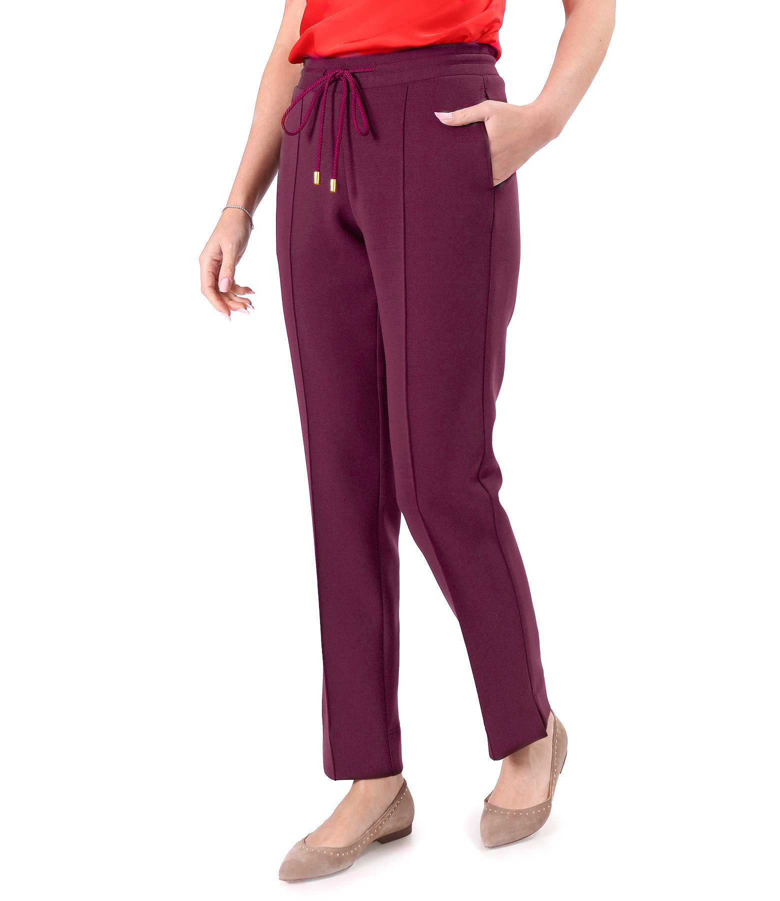 Pantaloni lejeri din stofa plina tip scuba cu bumbac (Burgundy Red), size