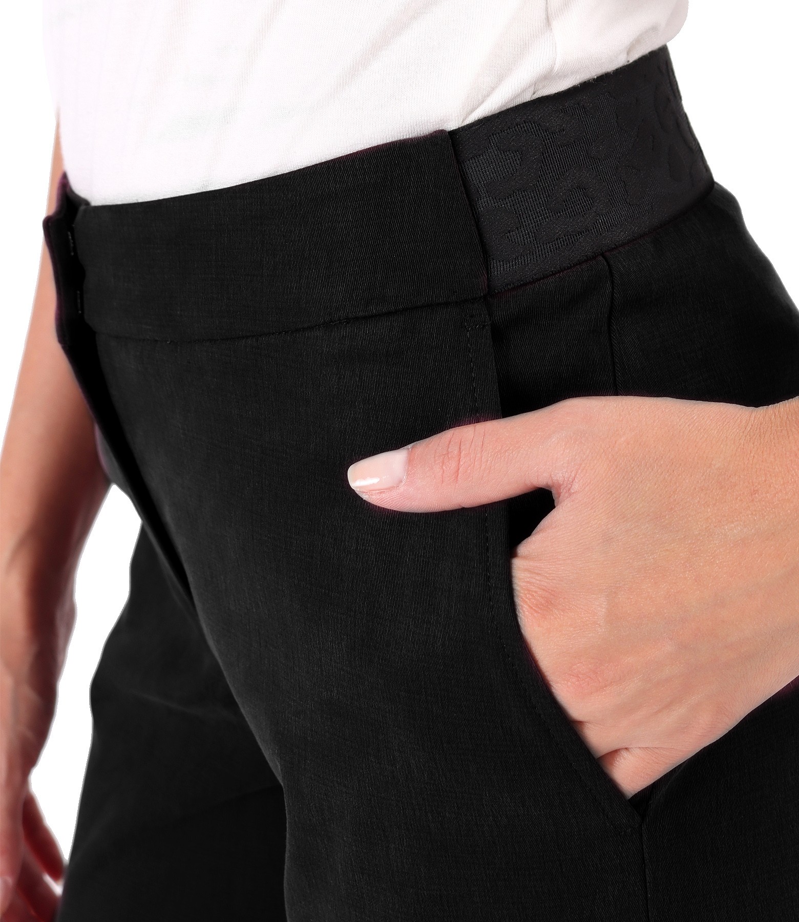 Pants made of tencel fabric with cotton, with pockets on the front and elastic at the waist. They close with a normal zipper, counter button, and 2 staples on the front.