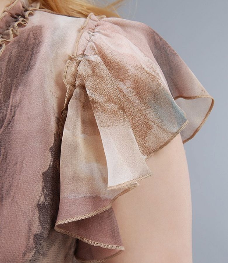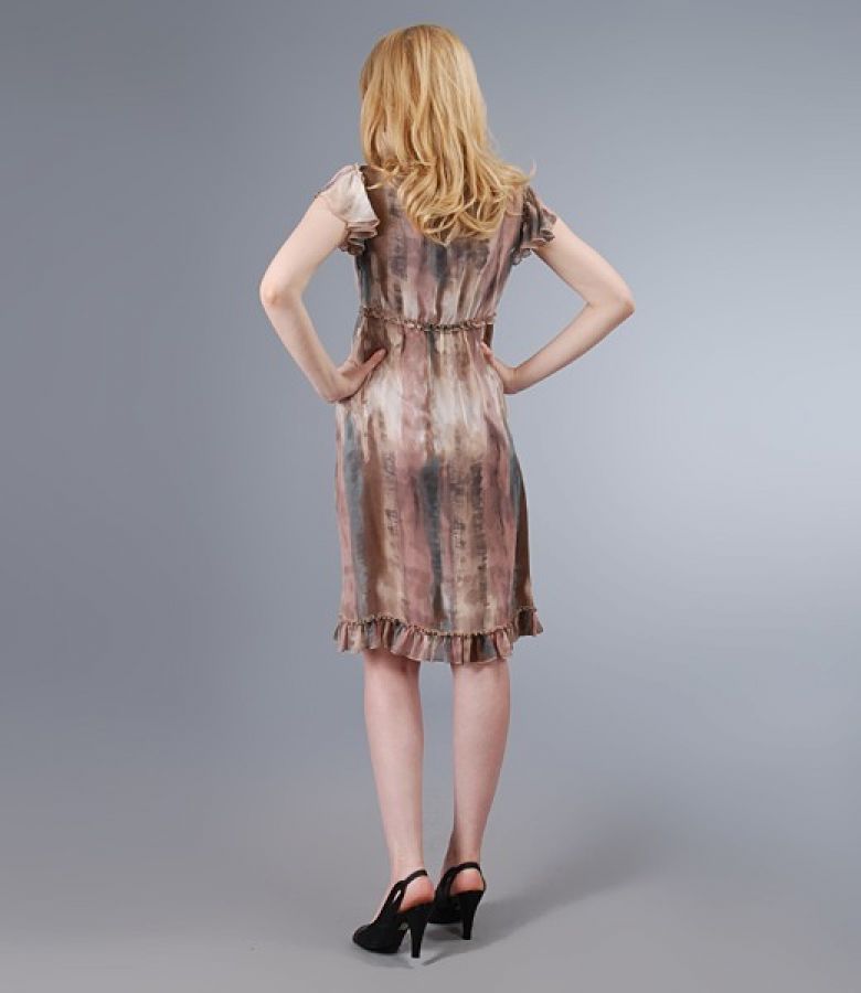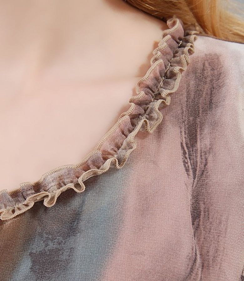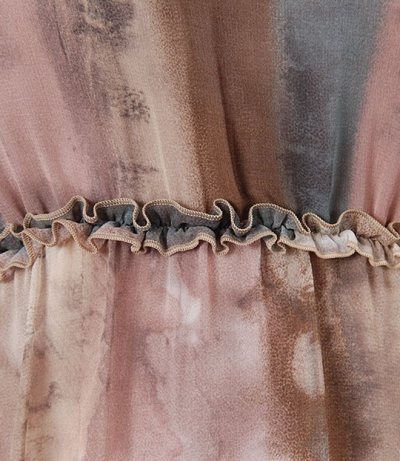 * veil casual dress, sleeve type fin, furbelow attached to the neck, waist and termination
