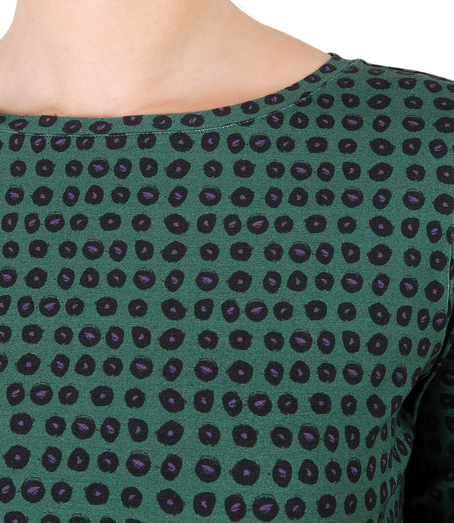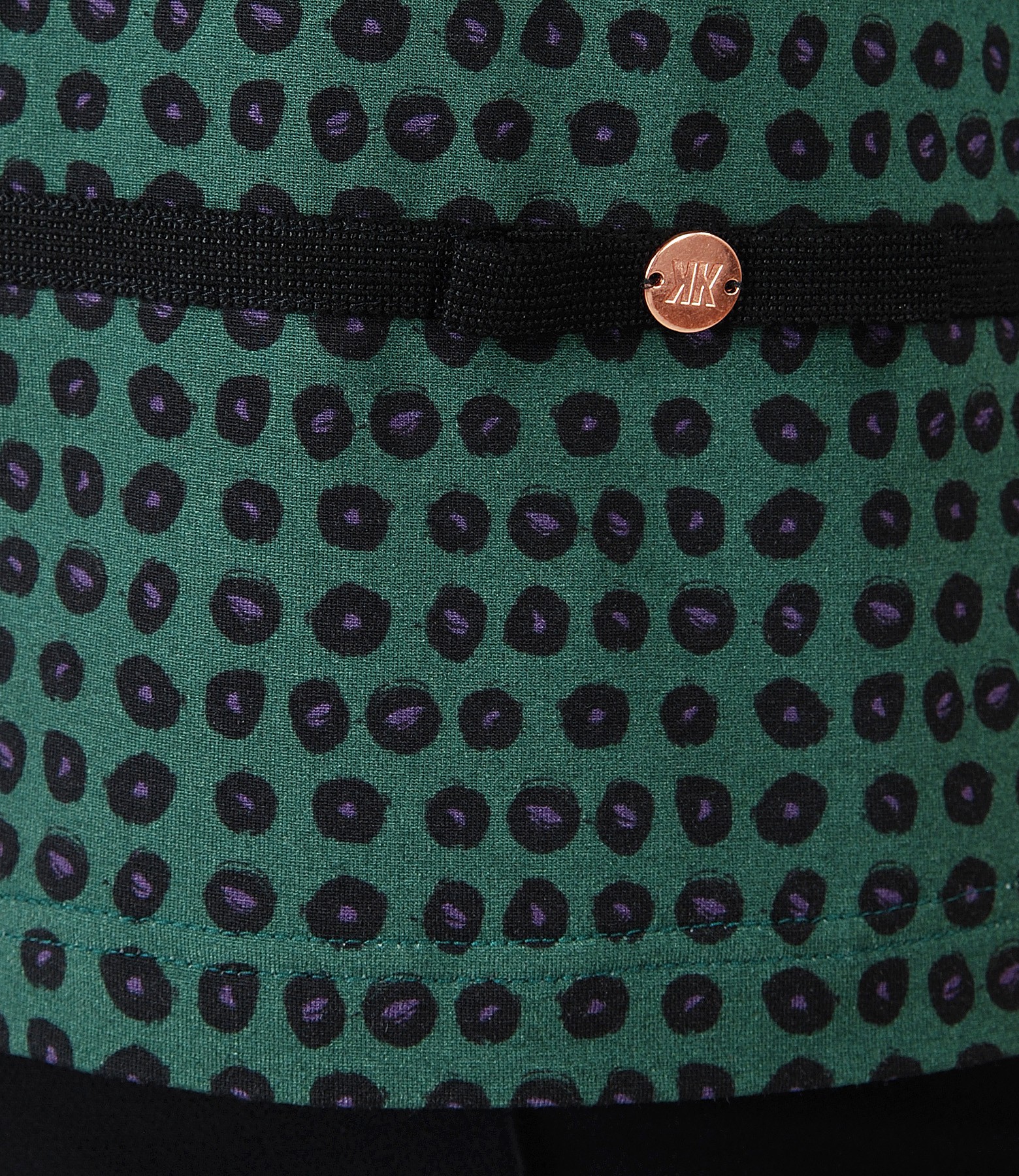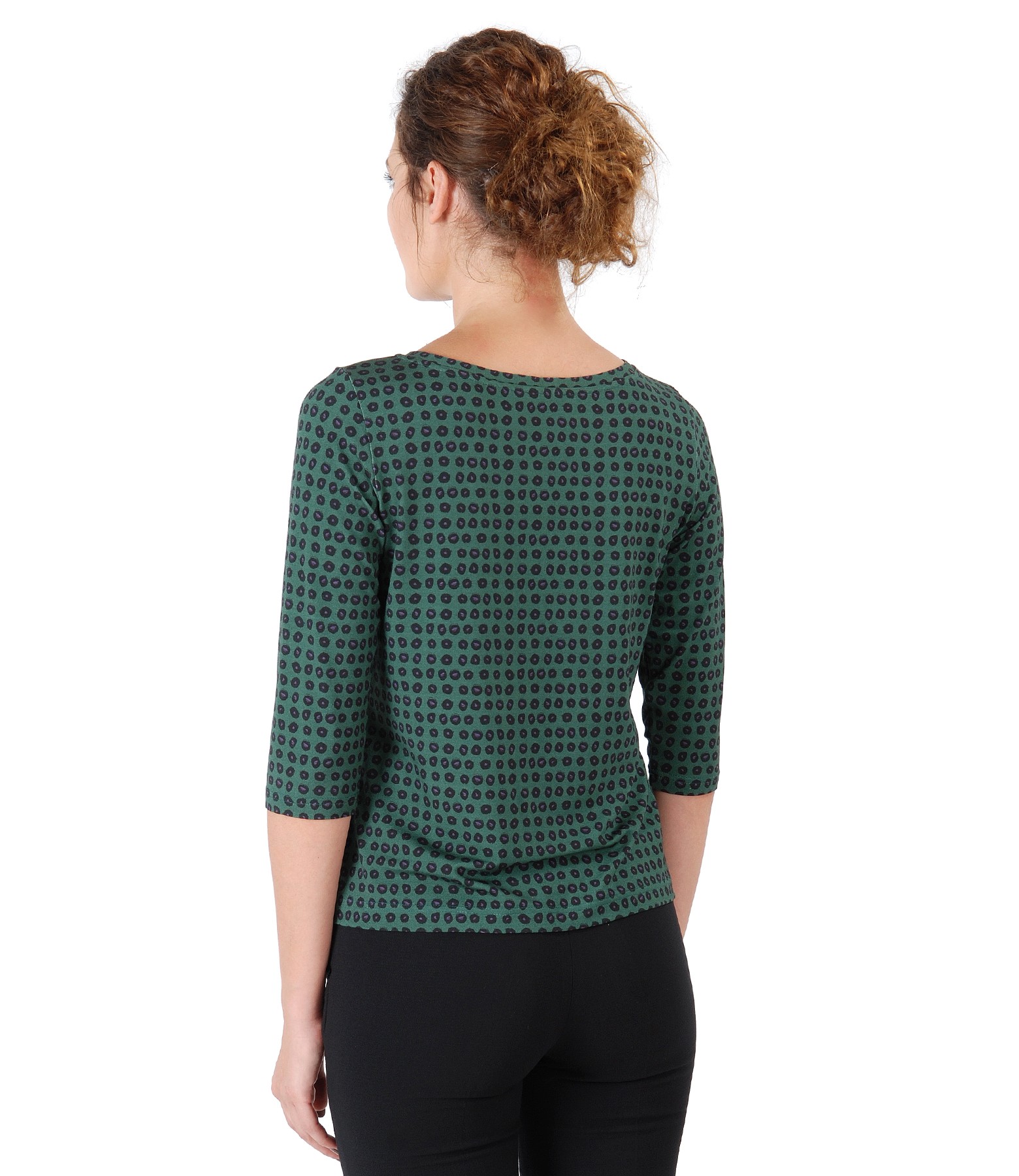 Printed elastic jersey blouse , with 3/4 sleeves, front rips band and boat low-cut neck.