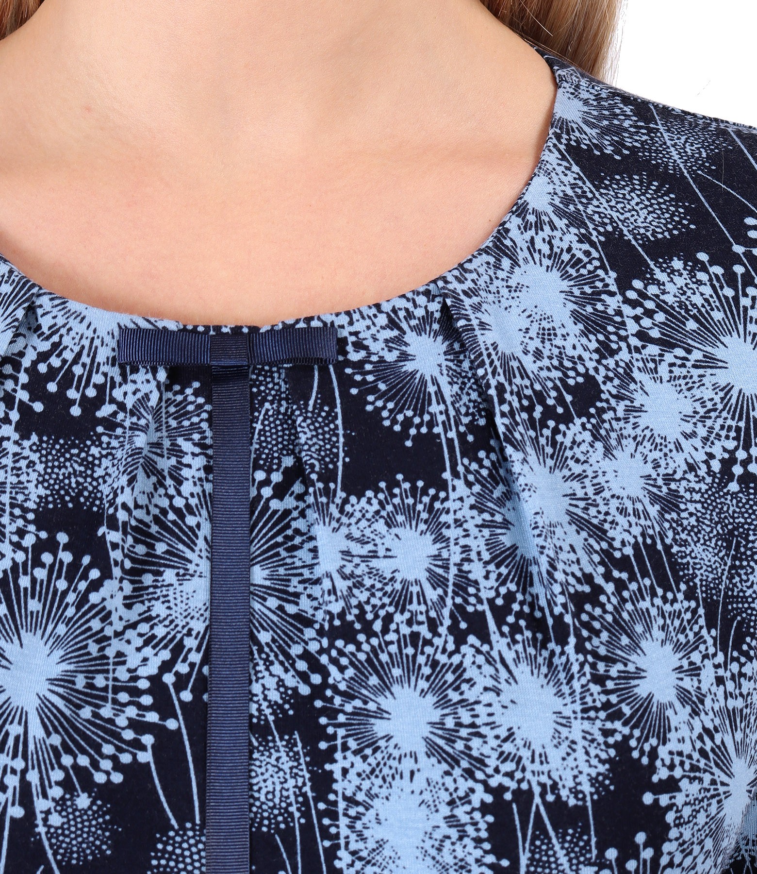 Printed elastic jersey blouse with rips bow on the decolletage (Blue), size