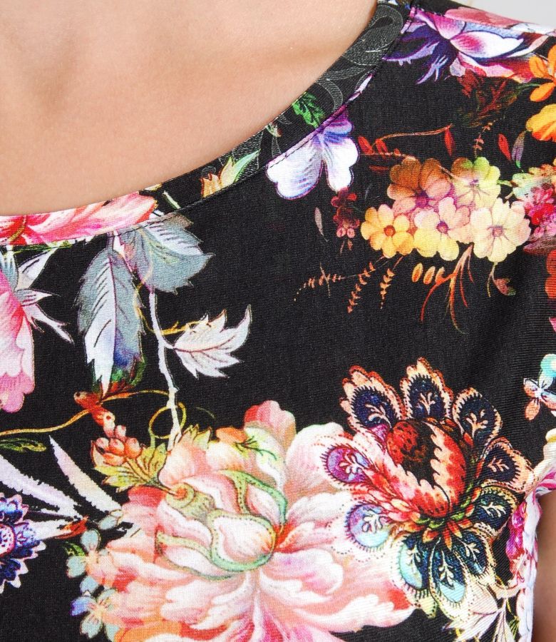 Printed jersey t-shirt, with boat neck-cut, drop shoulder sleeves.