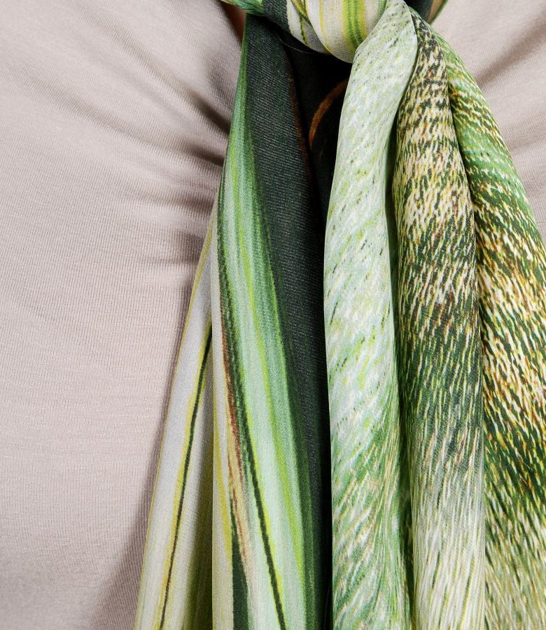 Printed silk satin veil scarf, rectangular shaped. Print position may vary per product.