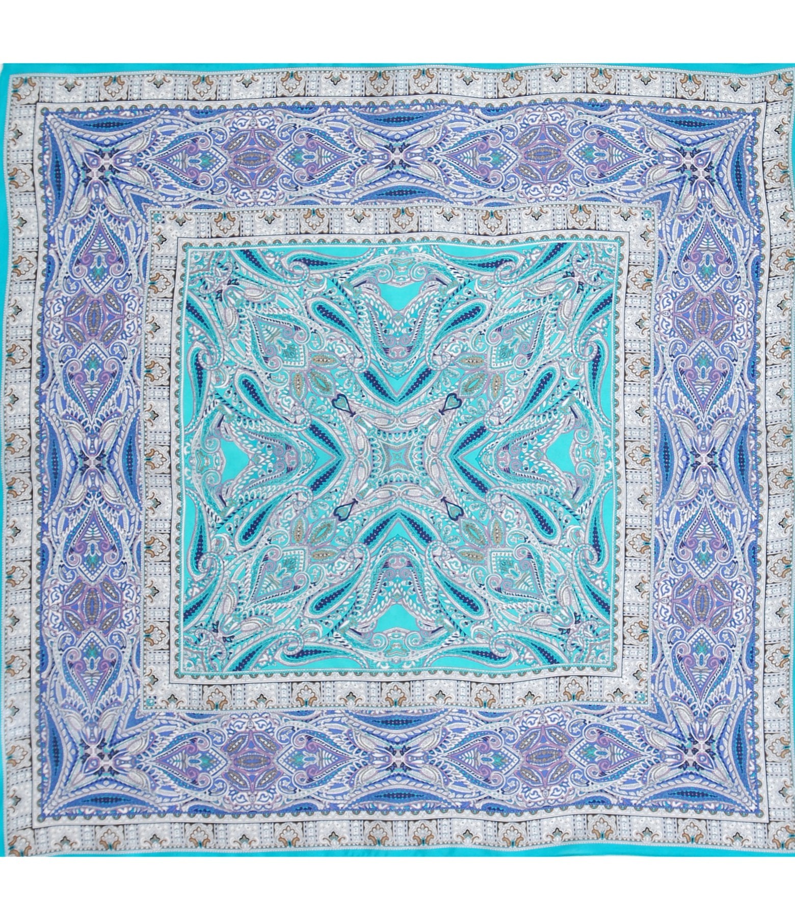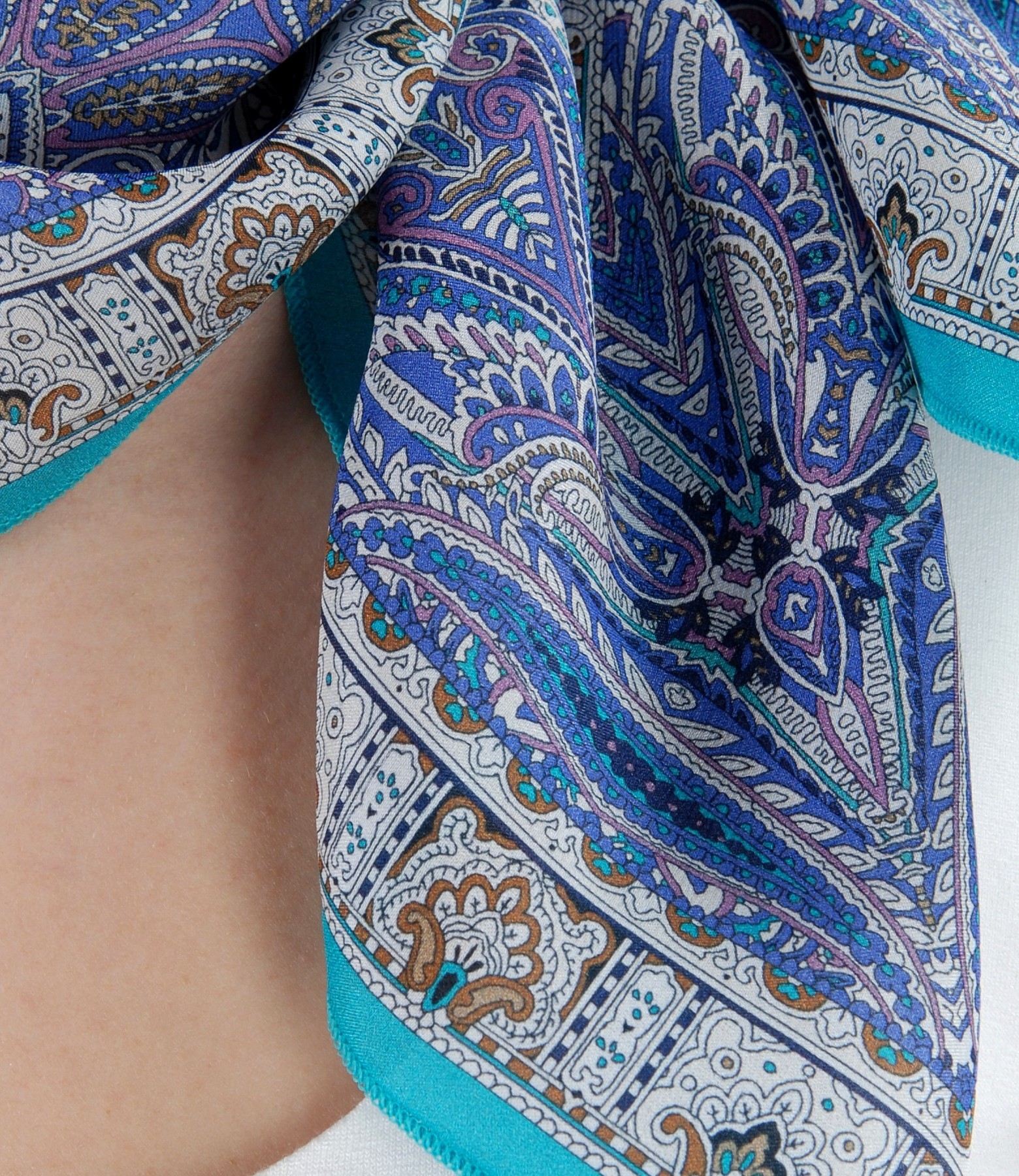 Printed silk satin scarf, rectangular shaped.
