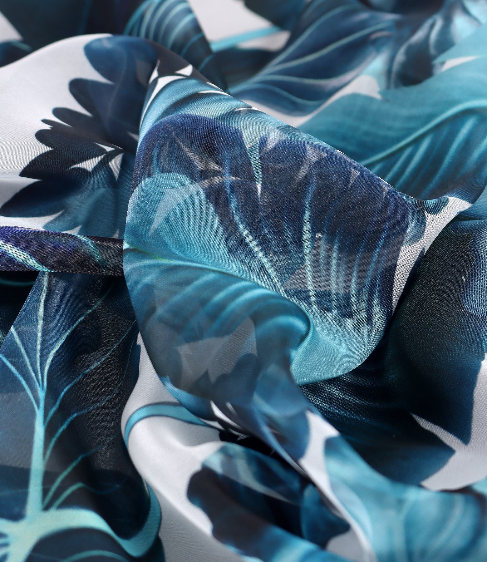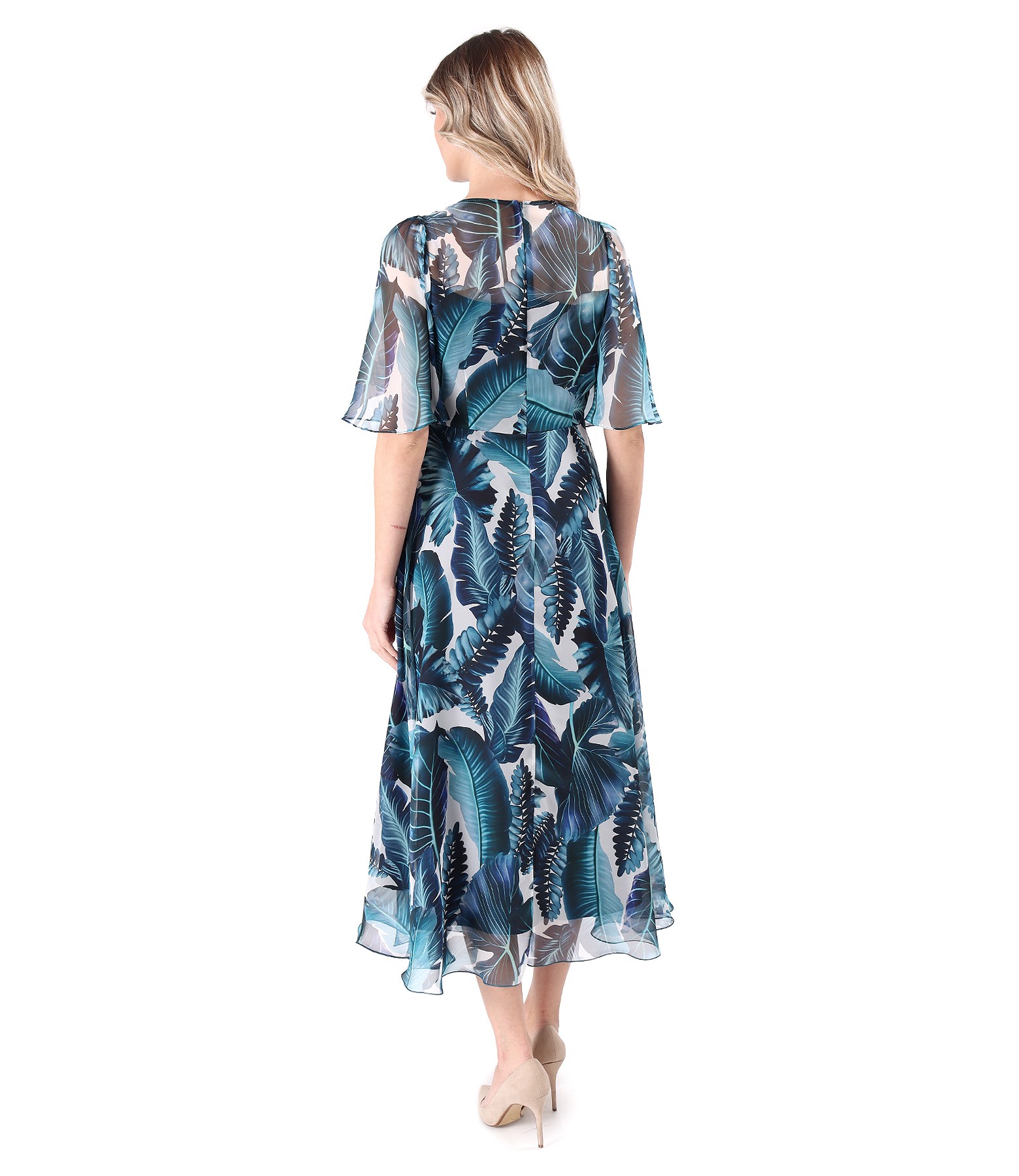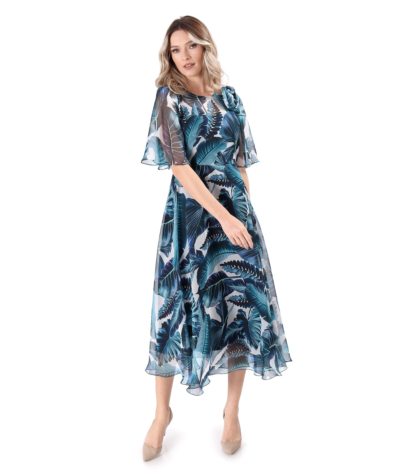 Printed soft veil midi dress with wide sleeves (Turquoise), size