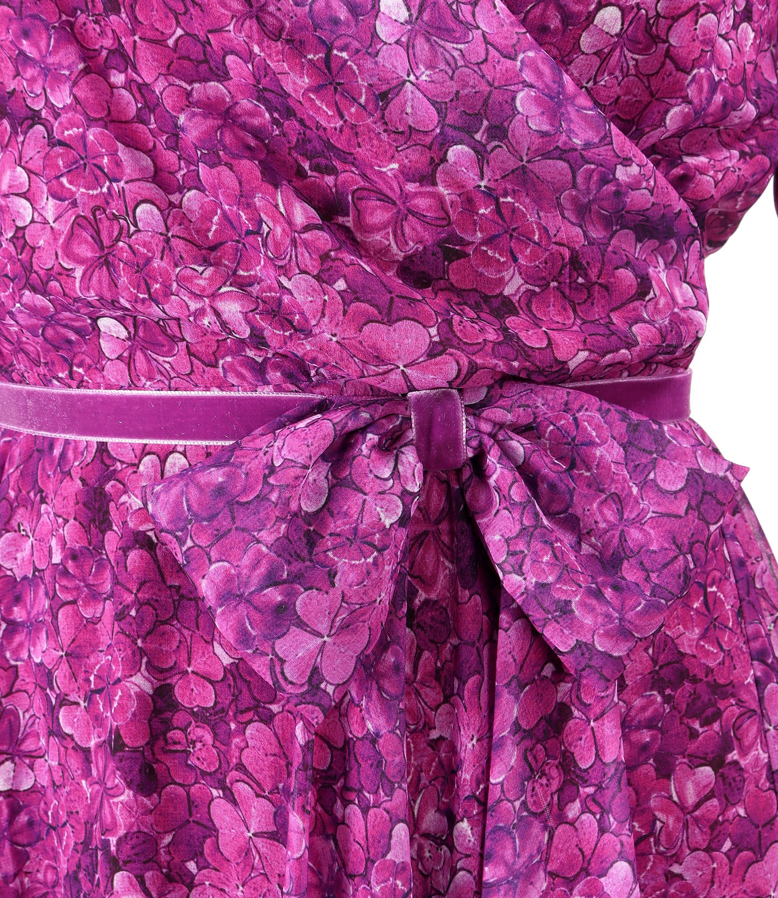 Printed veil elegant dress with a velvet bow (fuchsia), size