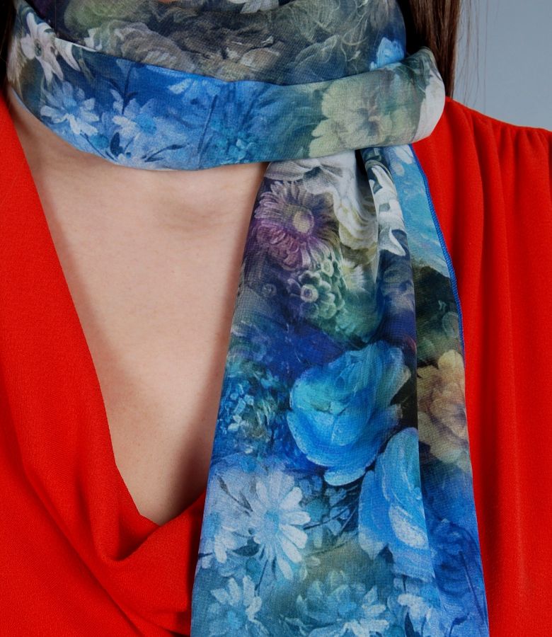 Printed crepe veil scarf, rectangular shaped.