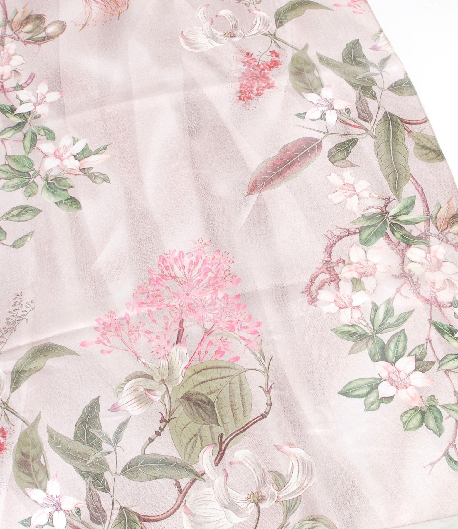 Veil viscose kerchief, flower print, neat finish on specialized machinery.