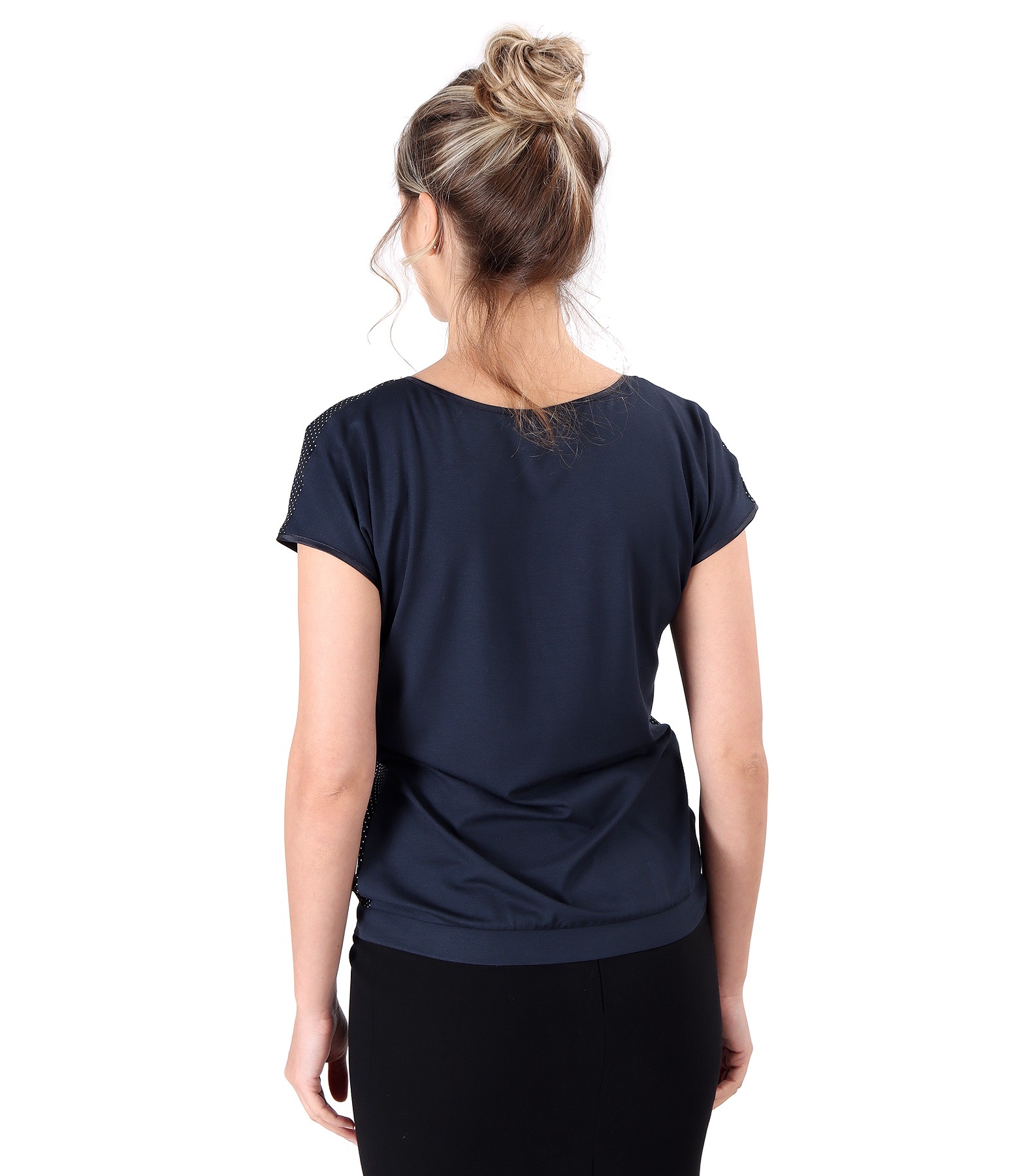 Printed viscose blouse with lace corners (Navy blue), size