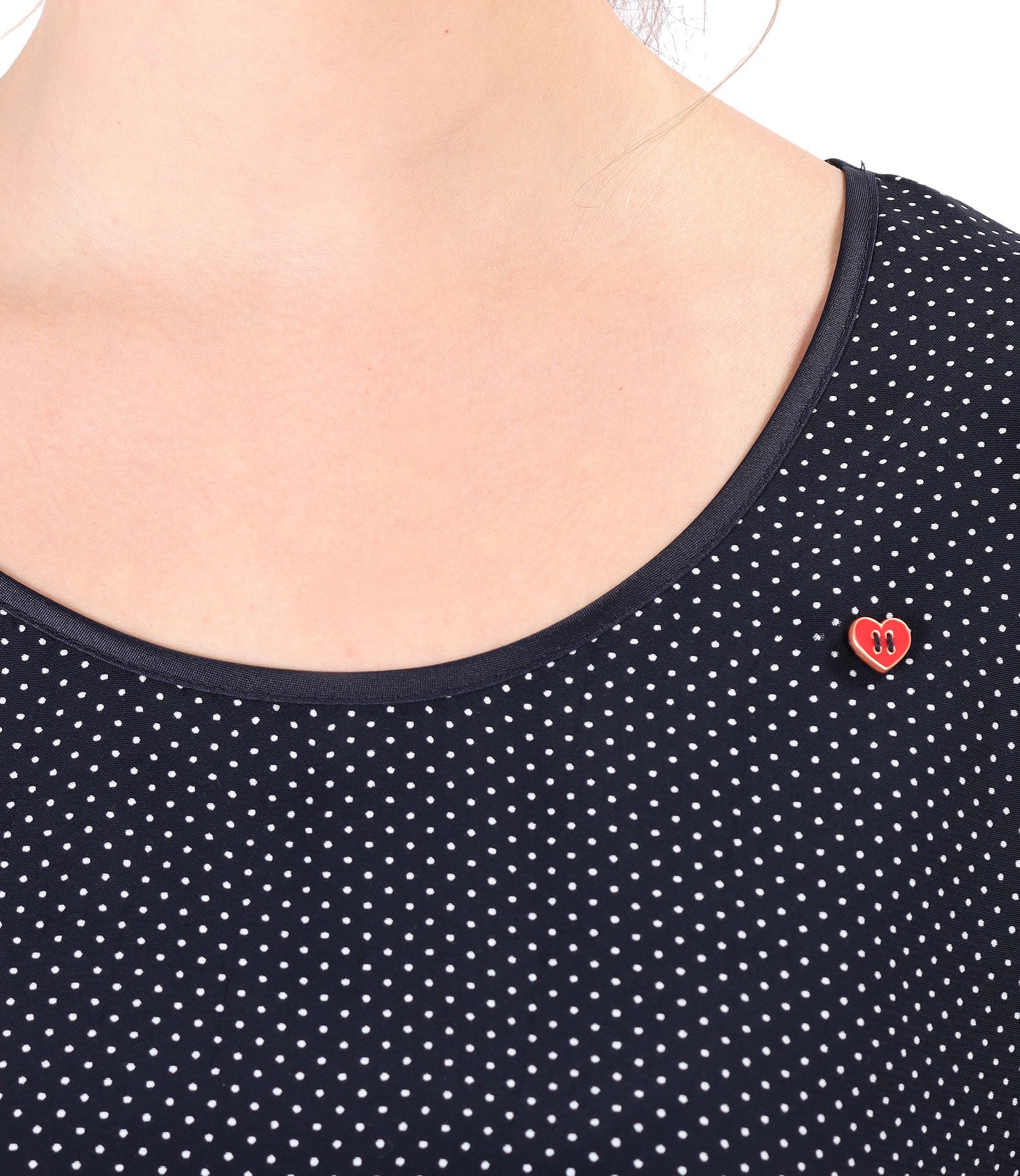 Printed viscose blouse with lace corners,elastic jersey back and a sewn heart at the decolletage .Round decolletage and dropped sleeves.