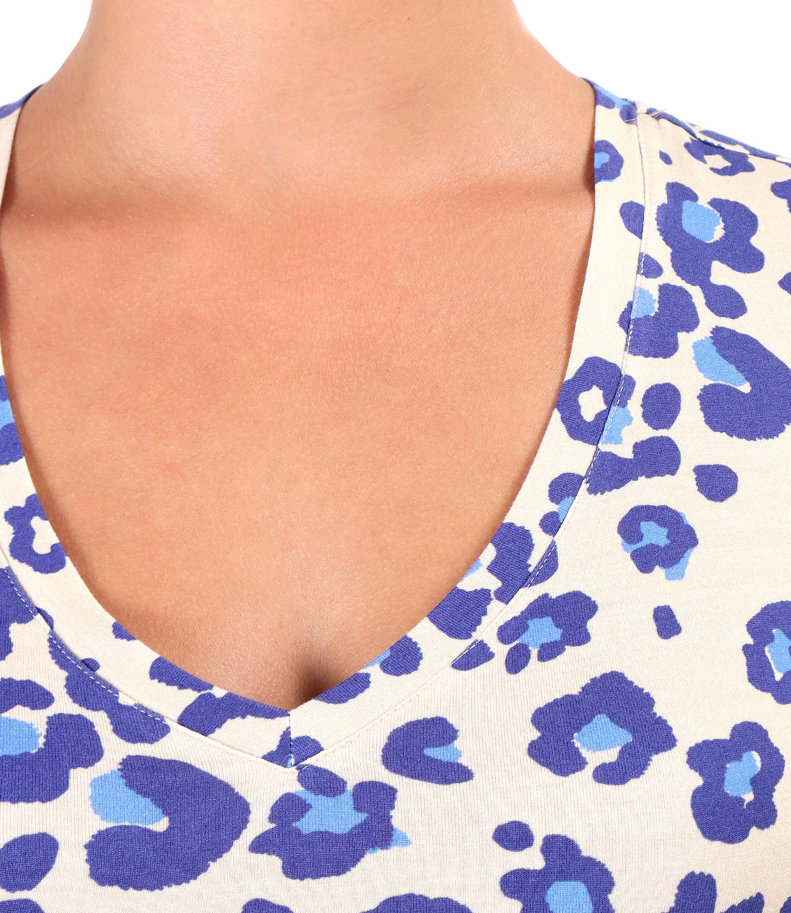 Printed viscose elastic jersey blouse, with 3/4 sleeves and V-neckline.