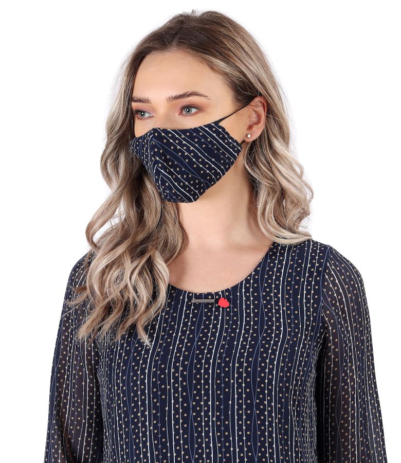 Reusable elastic jersey mask with floral motifs (Navy blue)