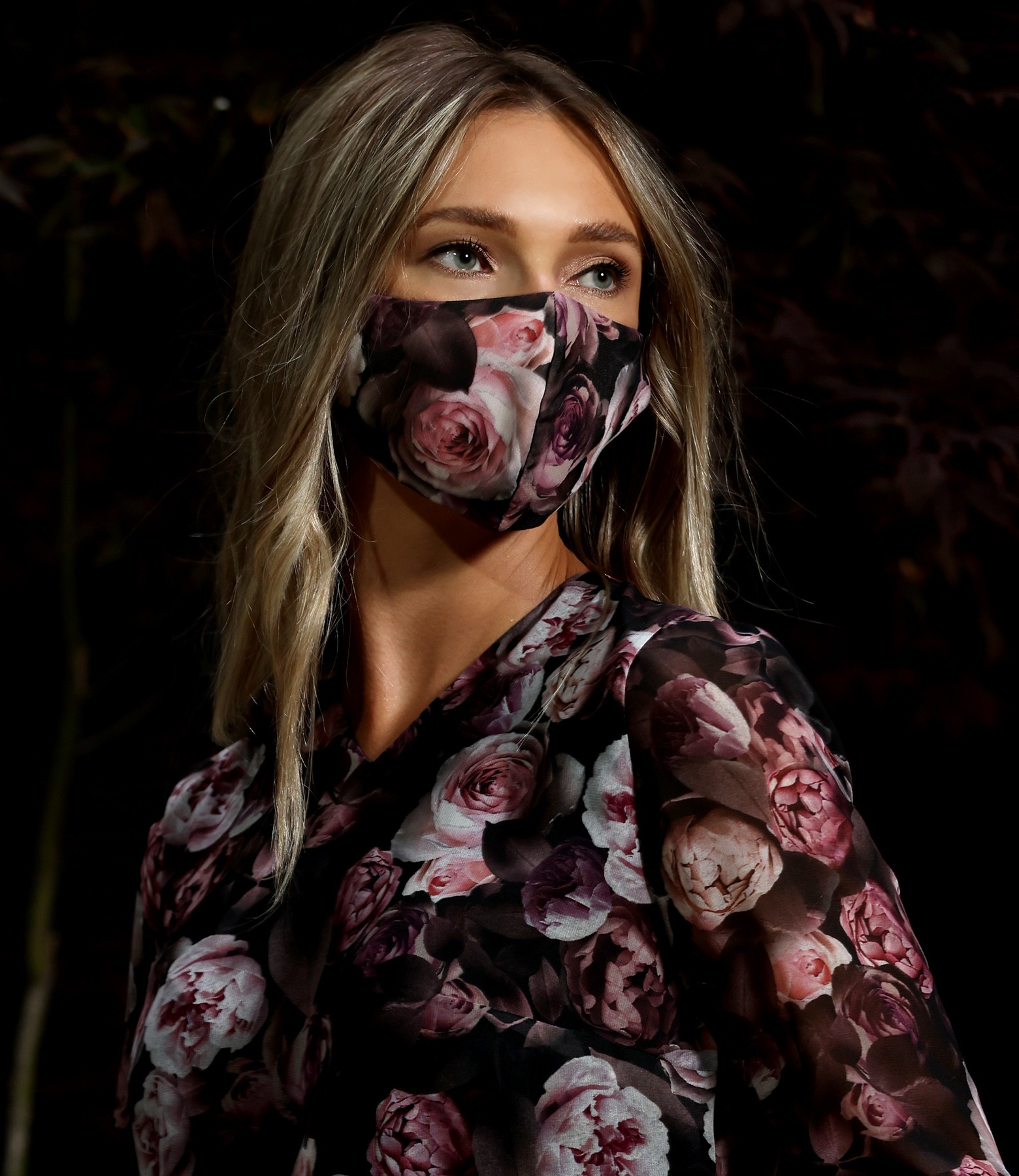 Reusable veil mask printed with floral motifs (Dusty Pink)