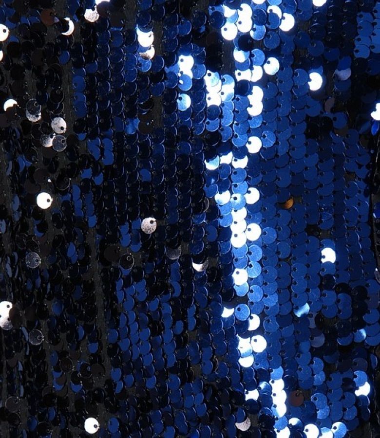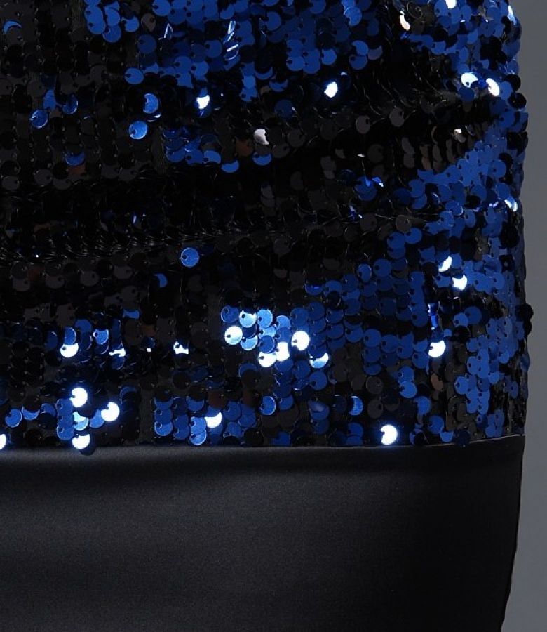 * rochie cu fata din paiete albastre, cu decoleu rotund, fara maneci