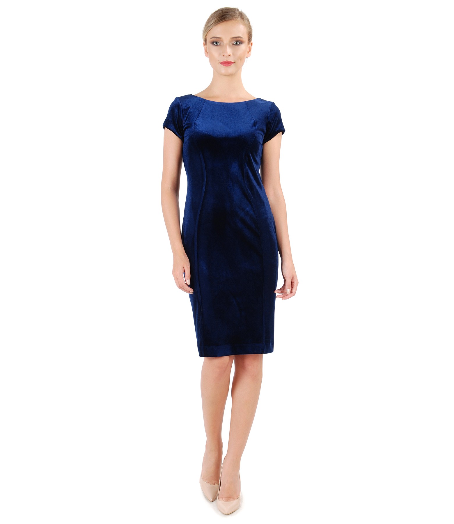 Rochie midi din catifea elastca uni (Royal Blue), size