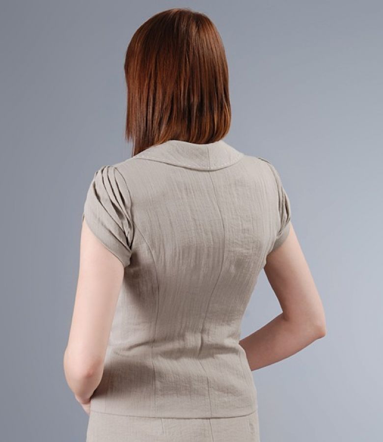 Sacou din vascoza creponata bej cu maneci scurte