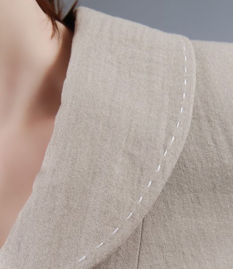 * sacou din vascoza creponata bej cu guler sal, decolteu rotund