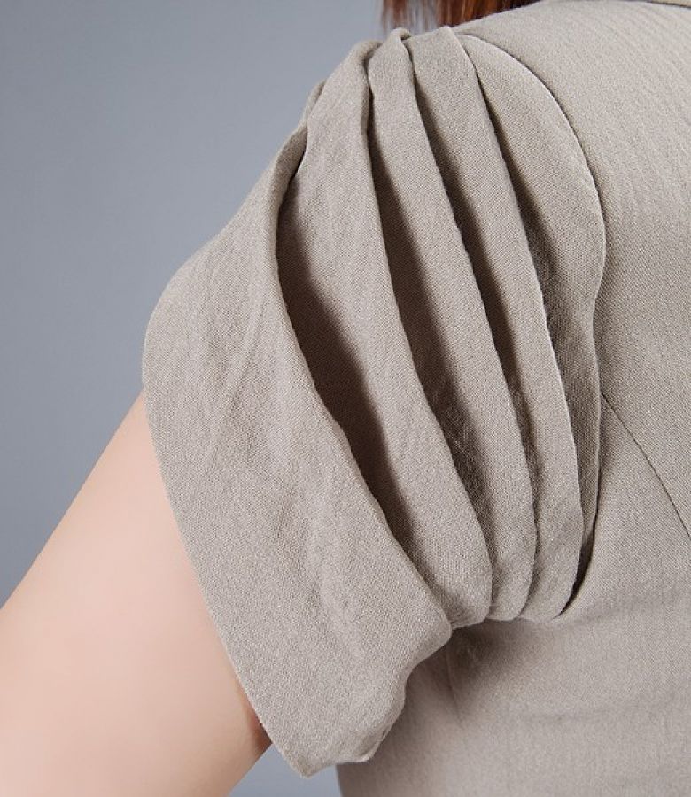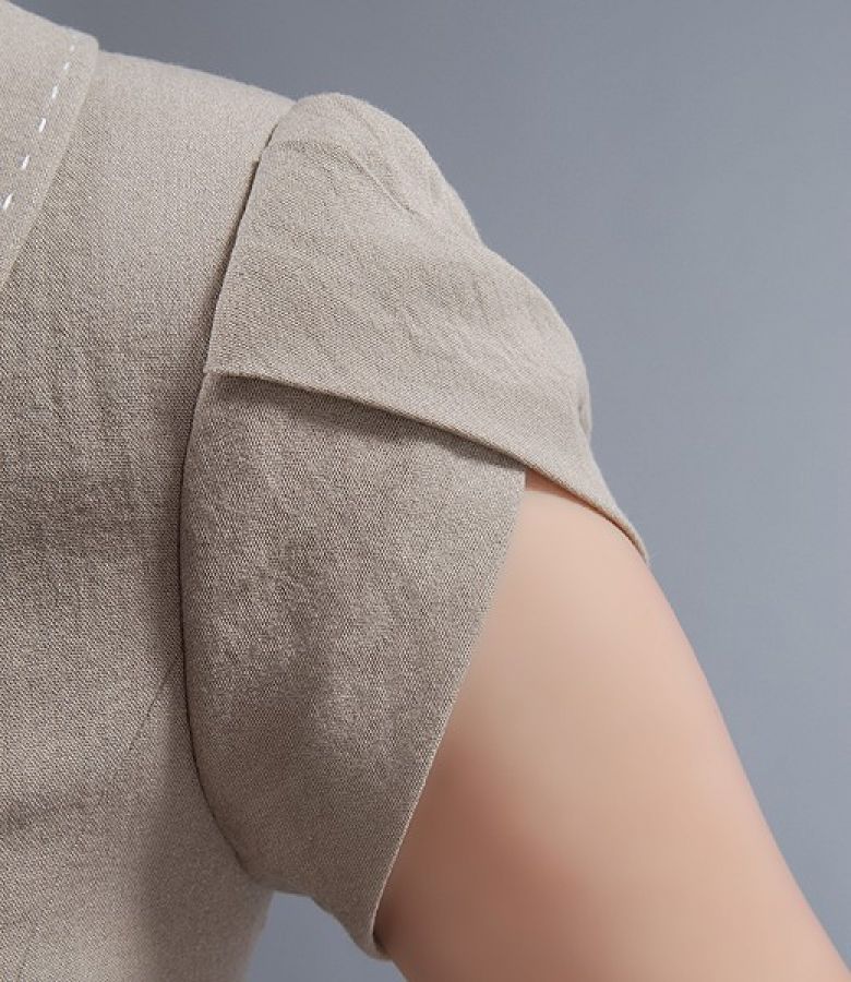 * clini laterali fata si spate, maneci scurte cu pliuri, buzunare aplicate pe fata