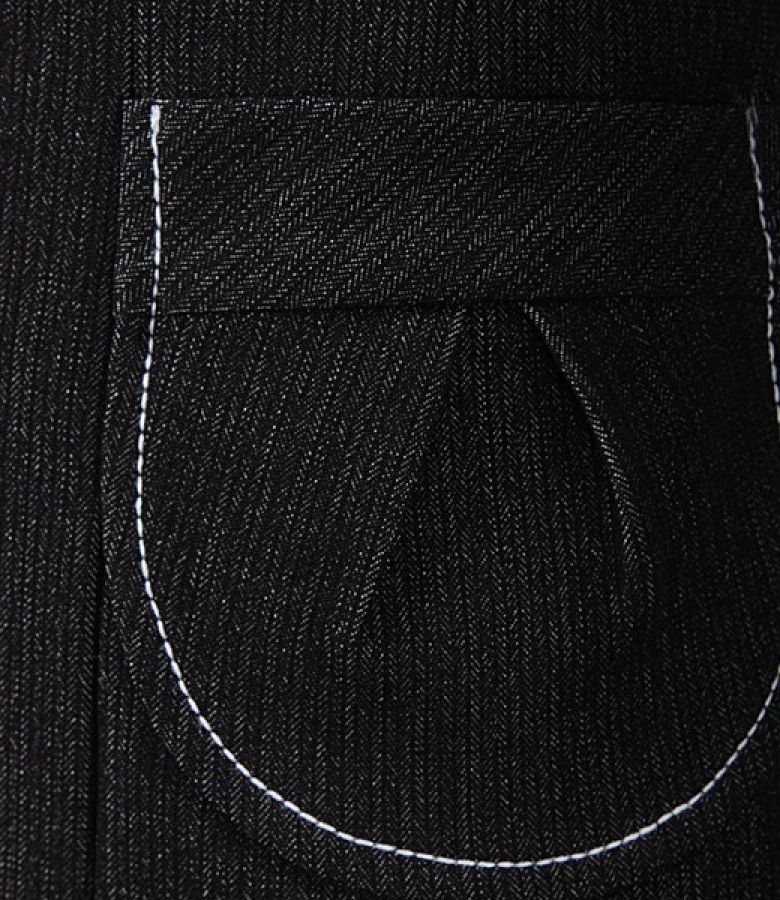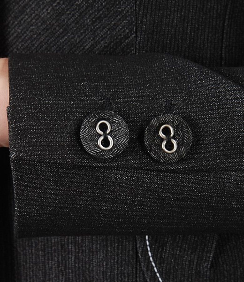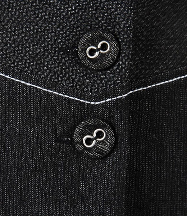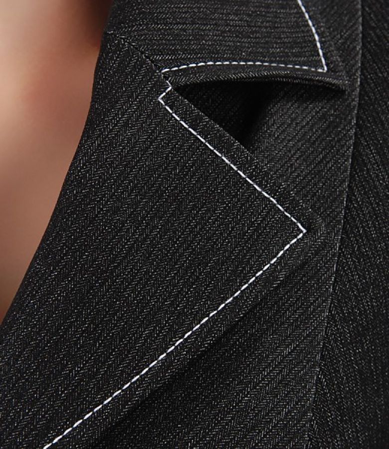 * tighele decorative contrast aplicate pe guler, rever, buzunare, fata si spate
