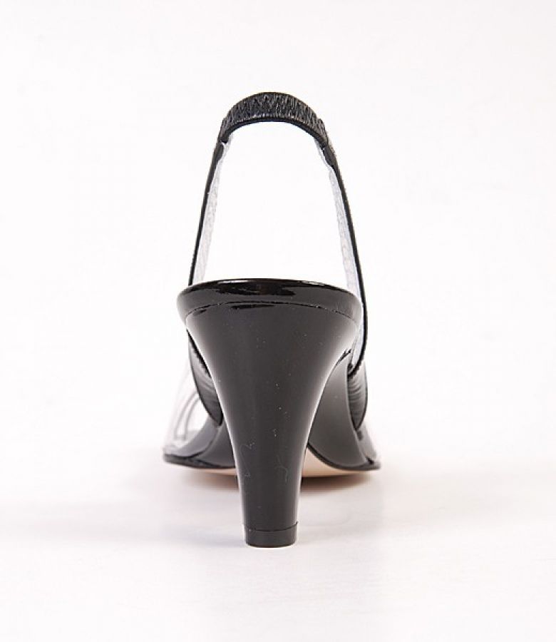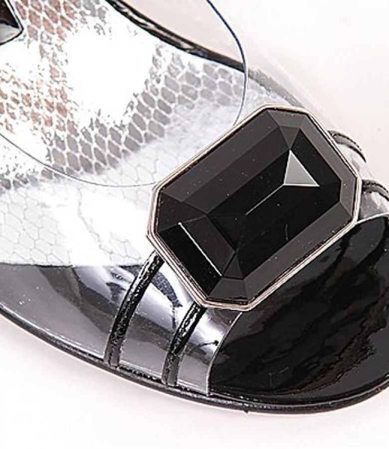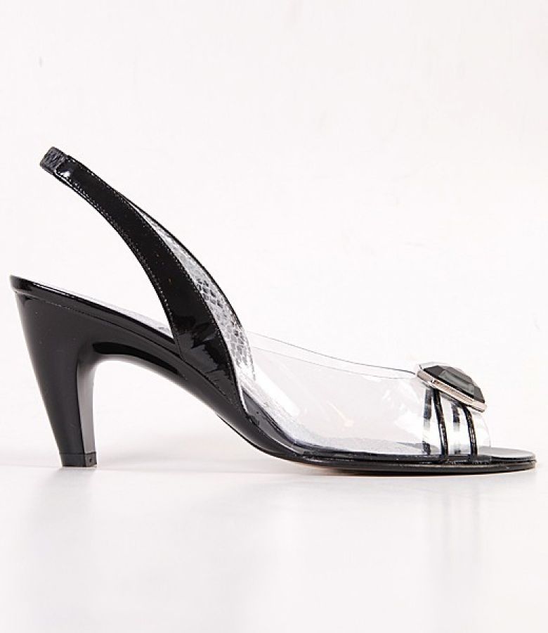 * sandale decupate la varf, cu aplicatie cristal negru si curele transversale de lac negru