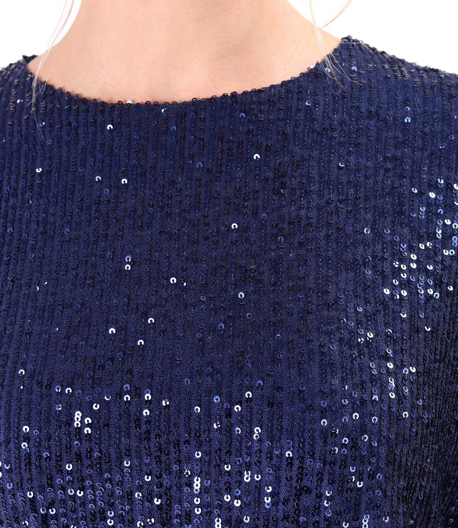 Sequin cocktail dress with satin drawstring waist (Navy blue), size