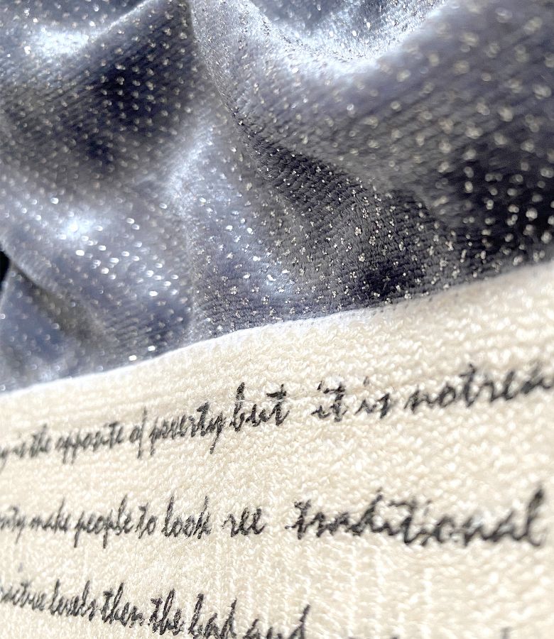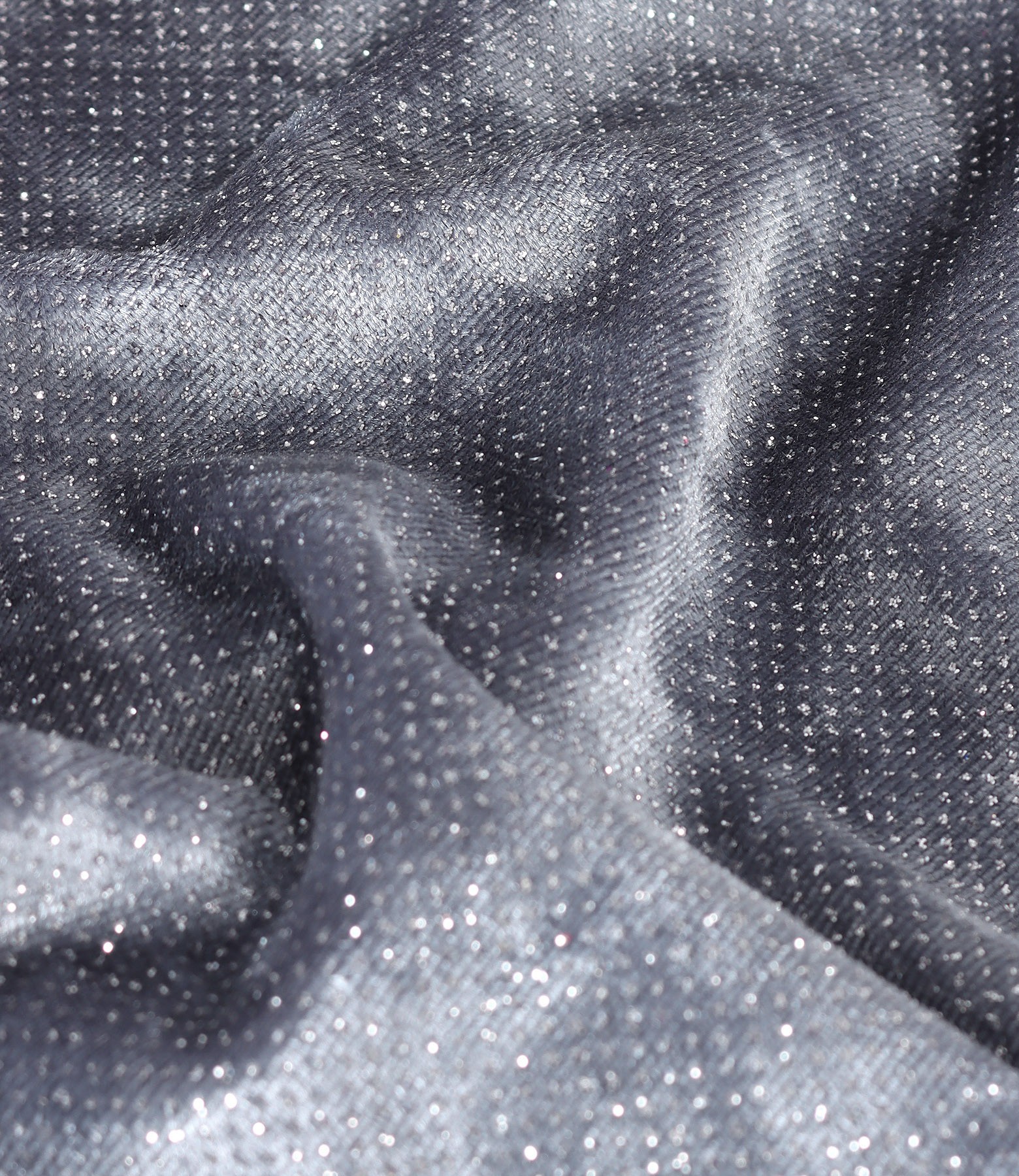 Shiny elastic velvet sweatshirt, with long sleeves, round decolletage, and elastic ends.