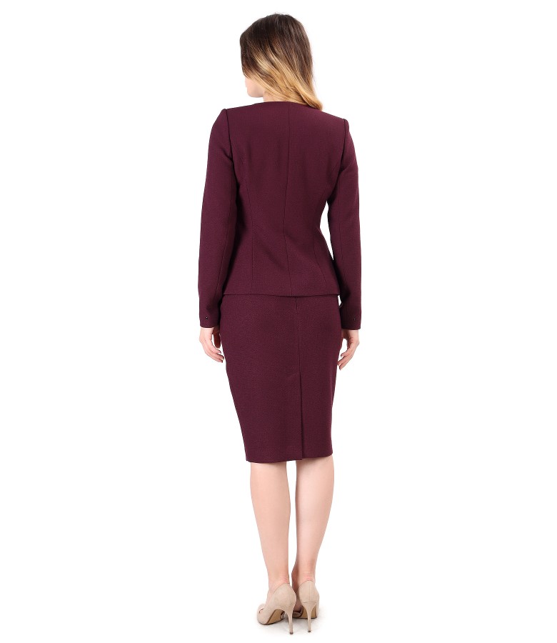 Skirt and jacket made of elastic fabric with zipper on the front
