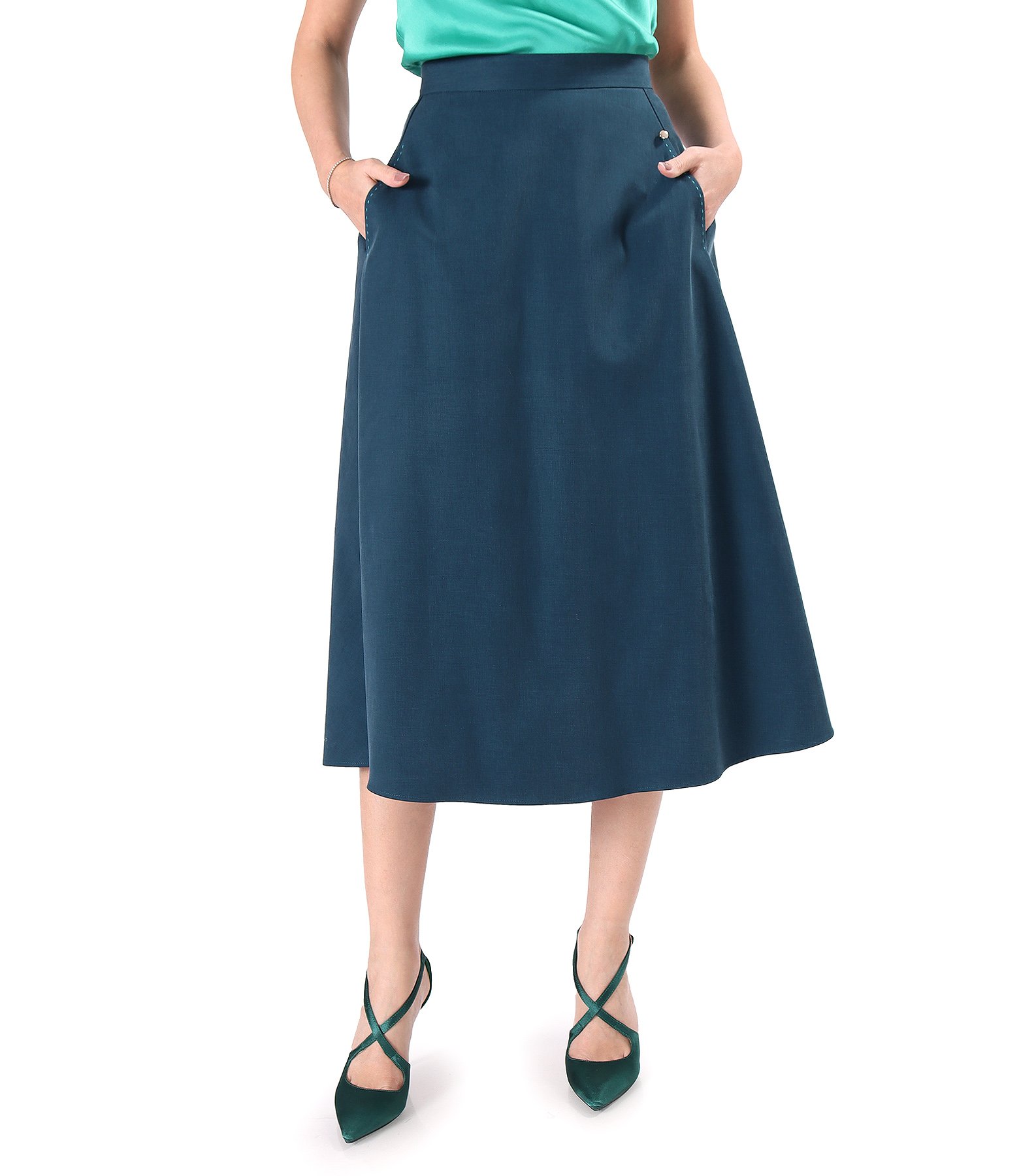 Skirt made of tencel fabric with cotton (Turcoaz Green), size