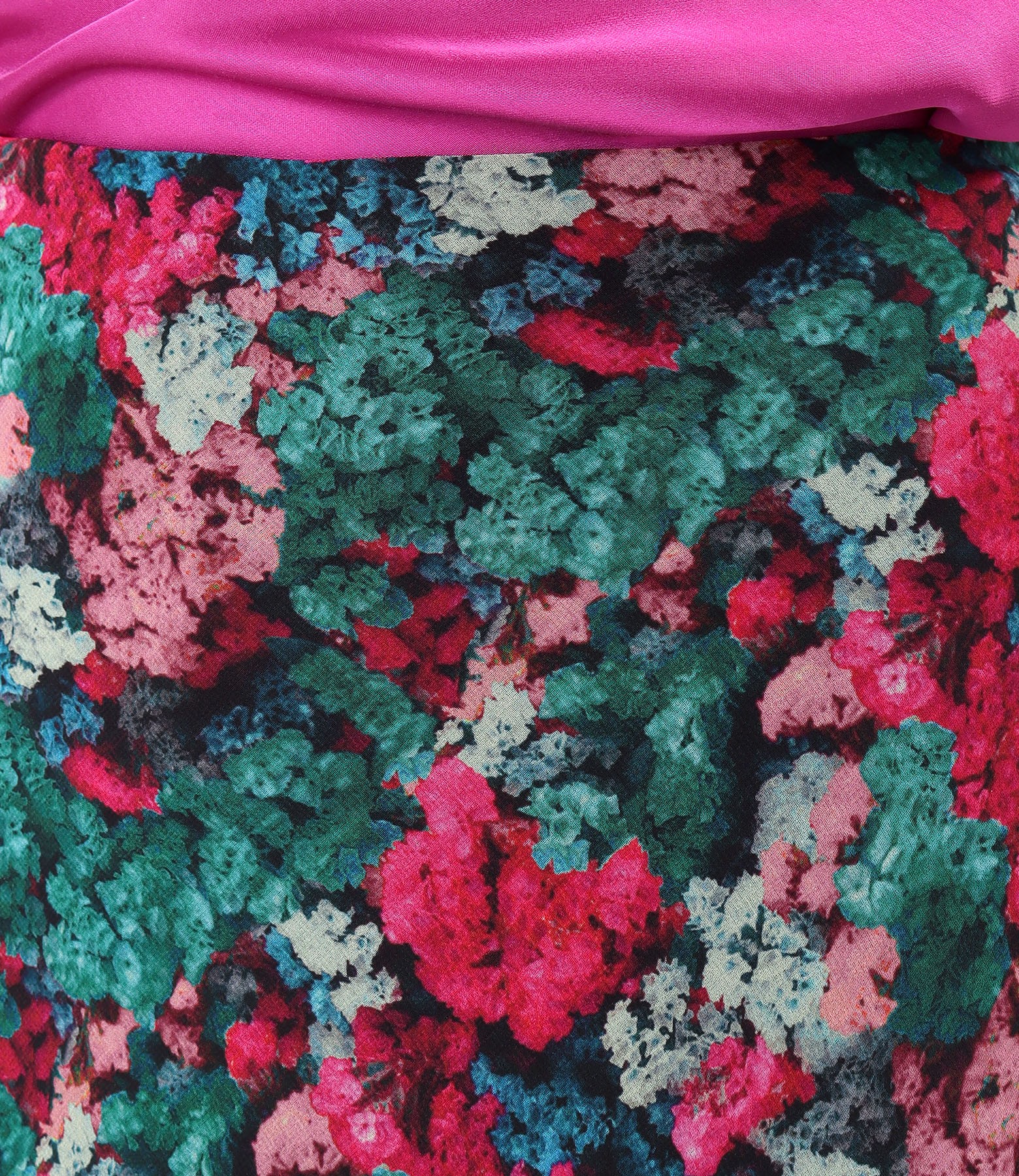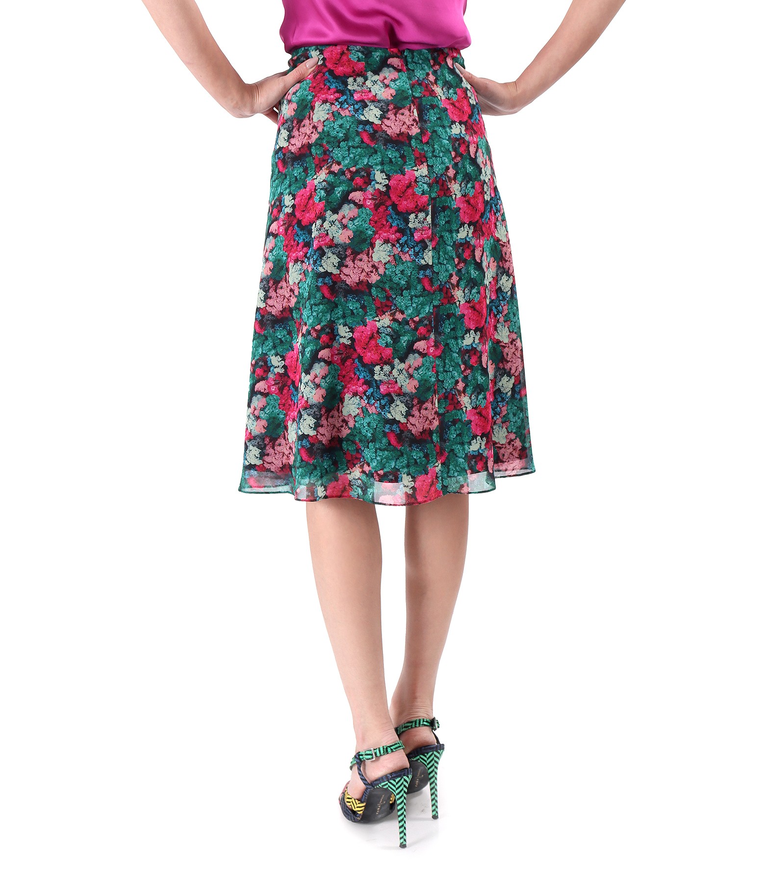 Voile skirt printed with floral motifs, padded with viscose. It closes with a hidden zipper in the middle of the back.