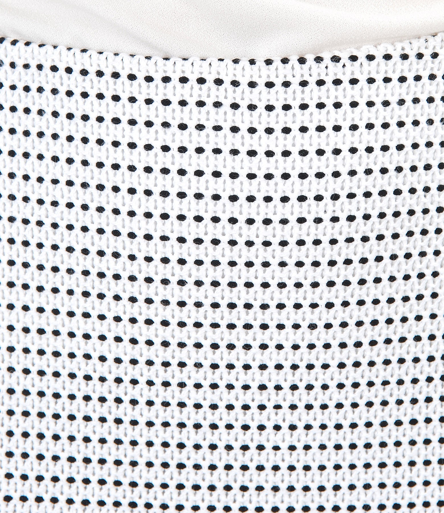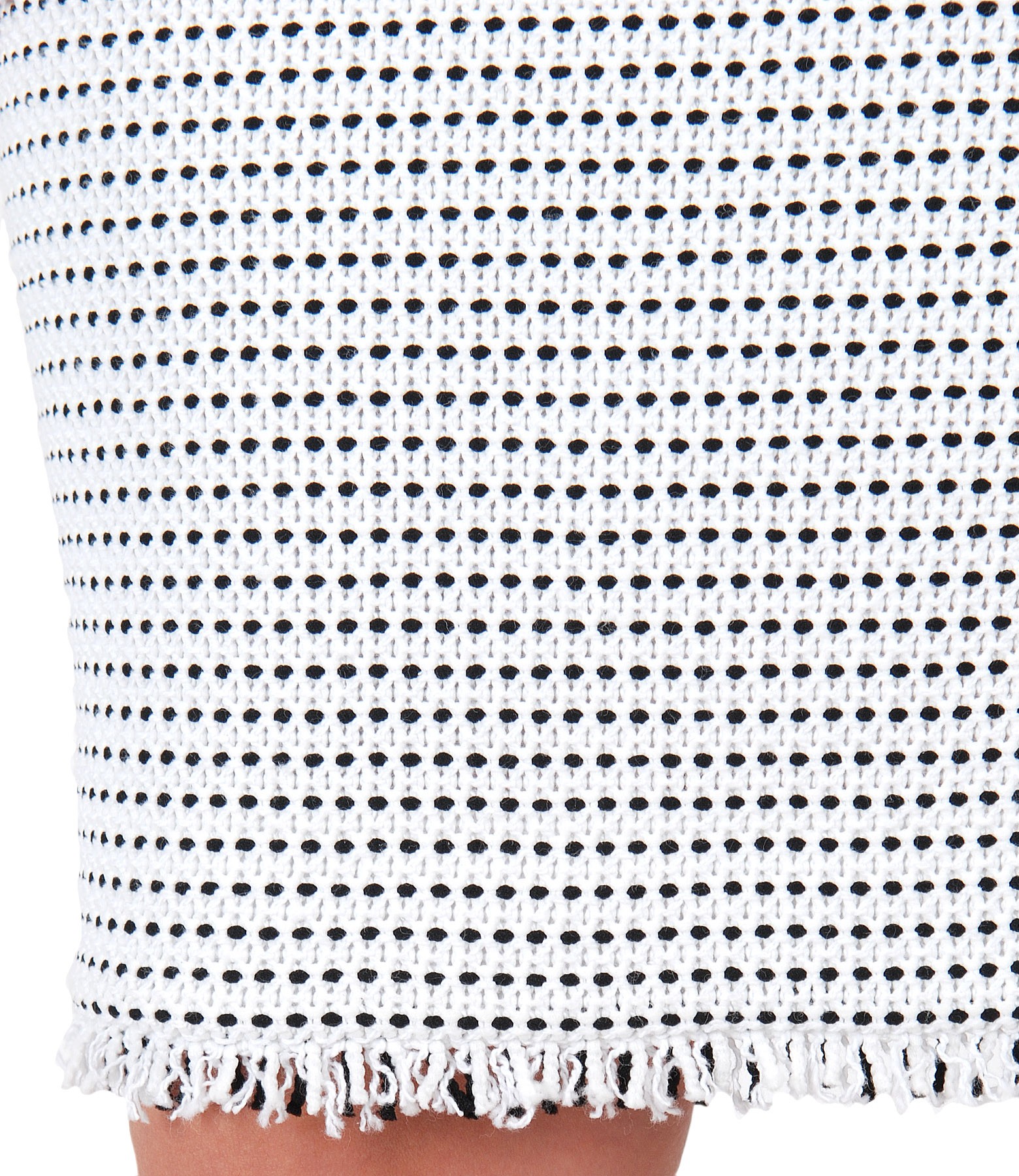 Office skirt, padded, made of cotton loops, tapered, without belt, with fringes. Closes with hidden zipper on the middle back.