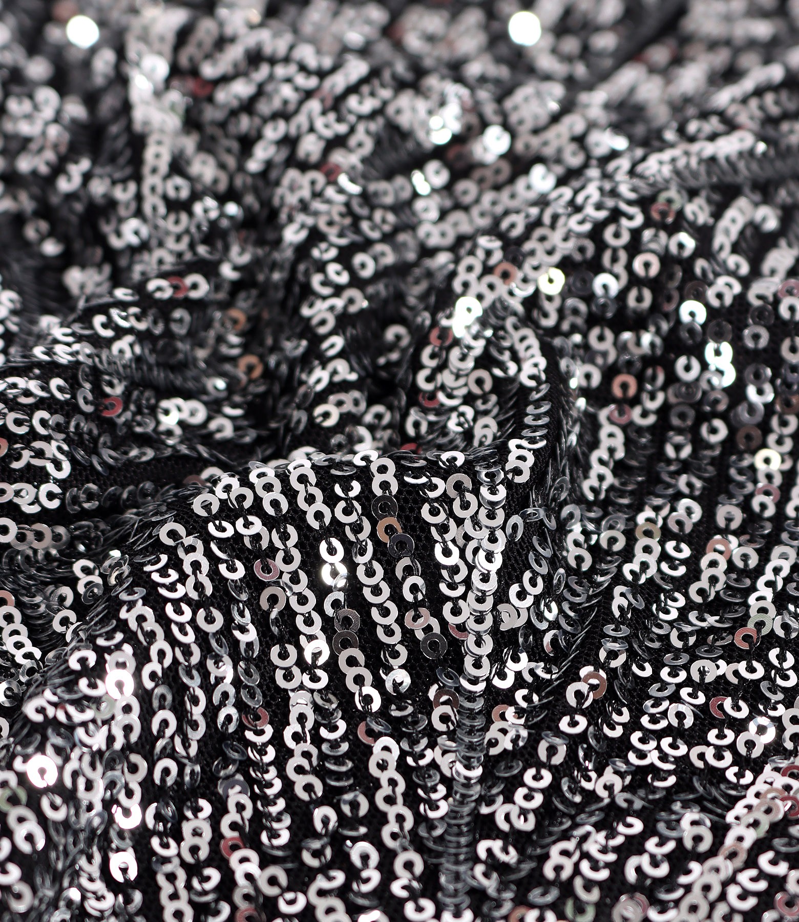 Sleeveless blouse made of black sequins, unlined, with a round neckline and no closure system.