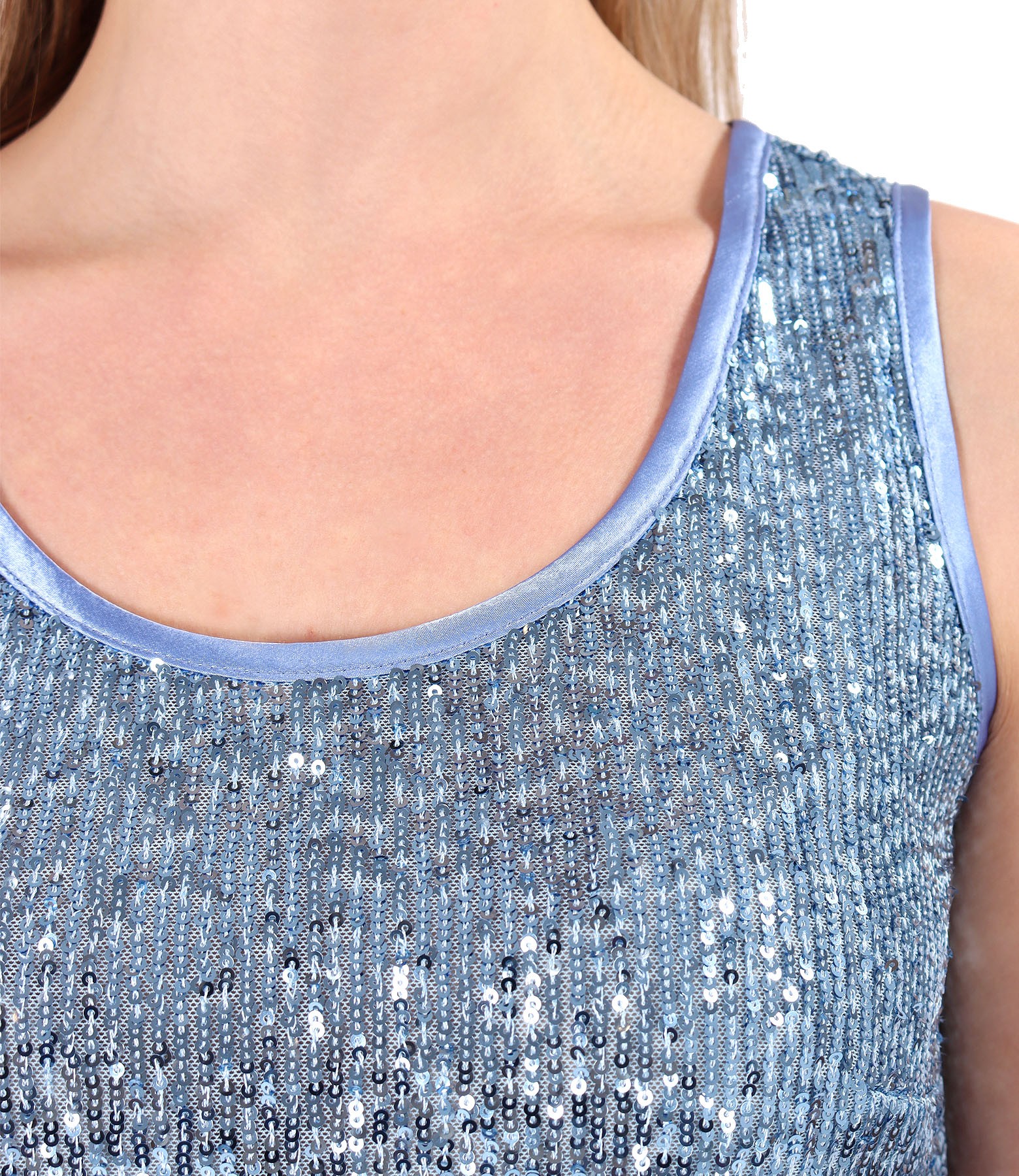 Sleeveless sequin blouse with satin trimming
