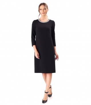 Straight pants made of elastic fabric, with front stripe and oblique side pockets. Closes with normal zipper, a button and 2 front staples.