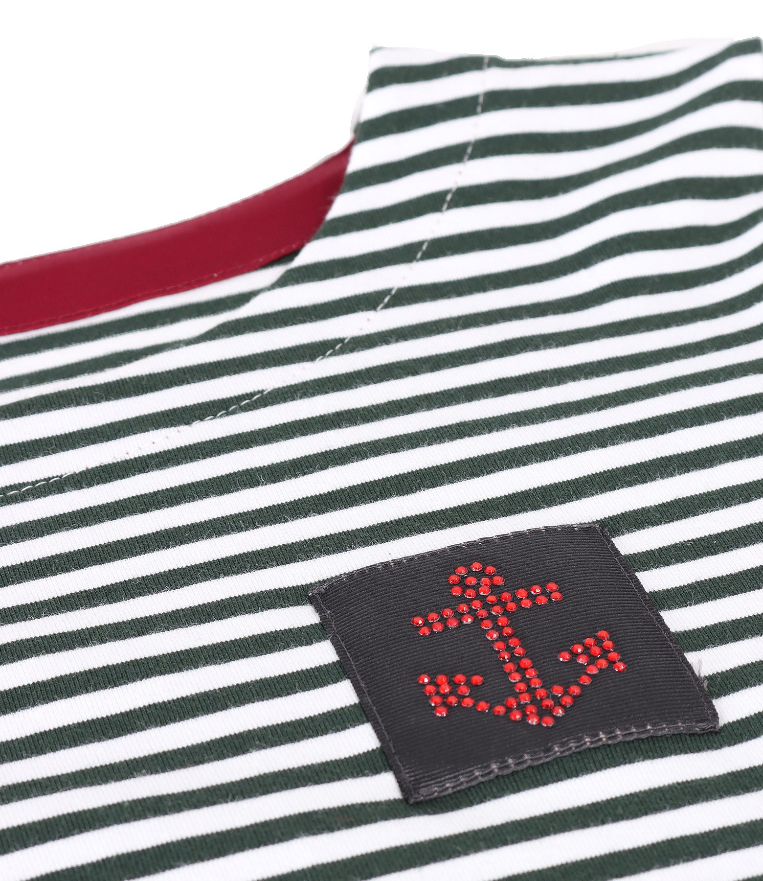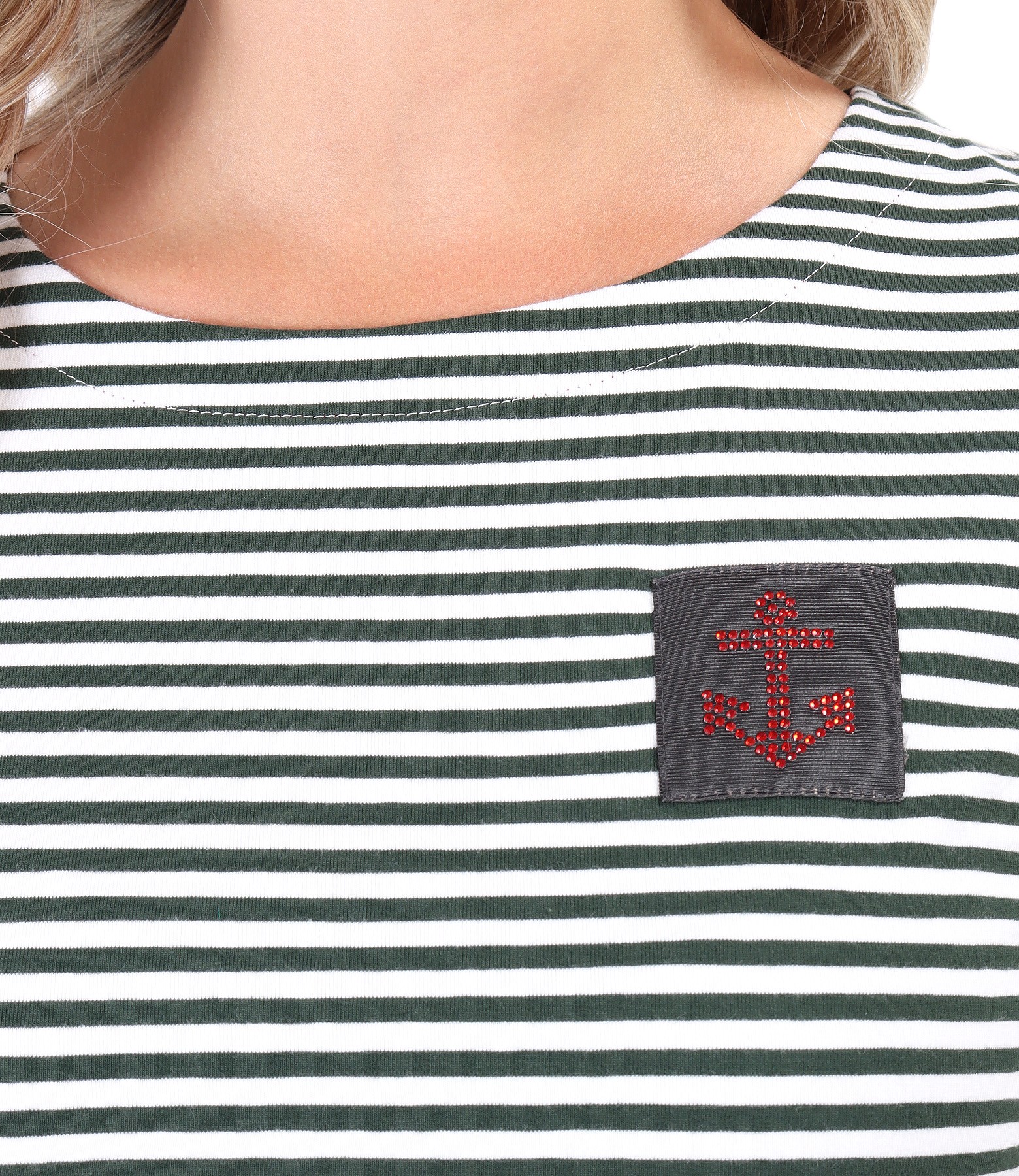Striped viscose elastic jersey blouse with short sleeves and round decolletage with decorative application in the shape of an anchor.