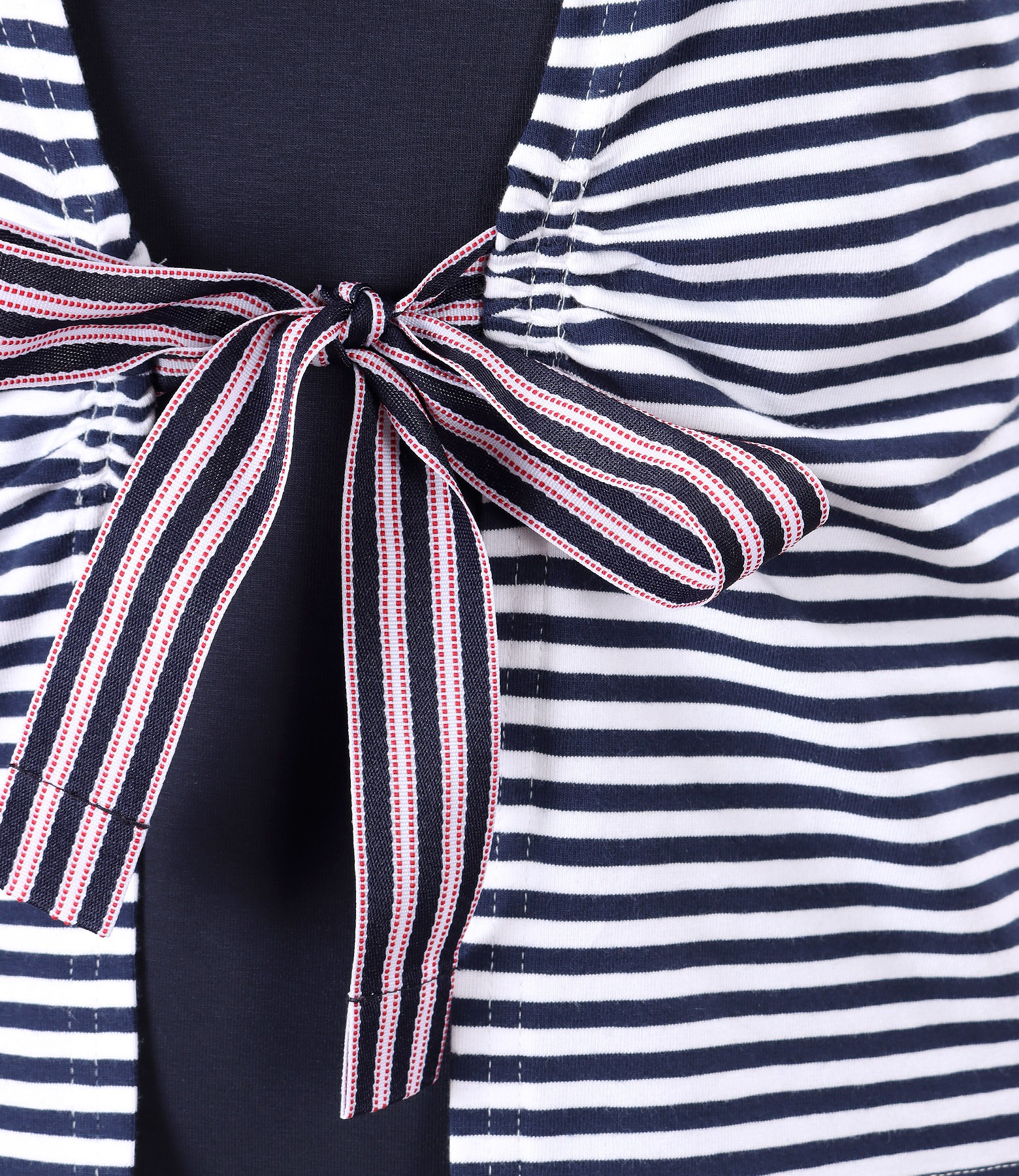 Striped jersey blouse tied with rips cord (Navy Blue), size