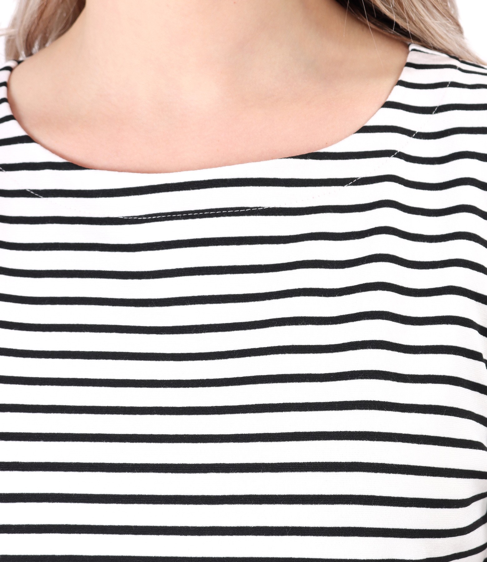 Striped thik viscose elastic jersey blouse with short sleeves and round decolletage.