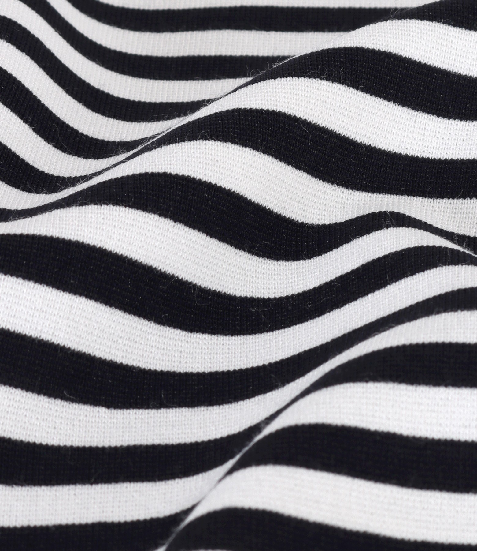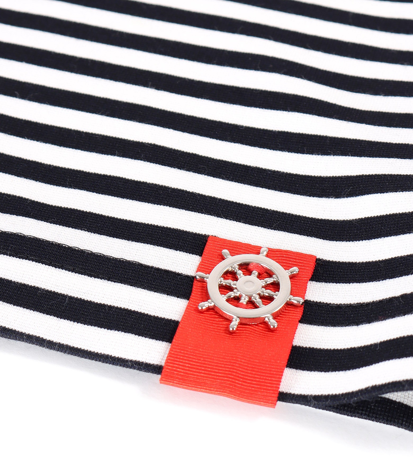 Striped thik viscose elastic jersey blouse with short sleeves and round decolletage with decorative application in the shape of an anchor.