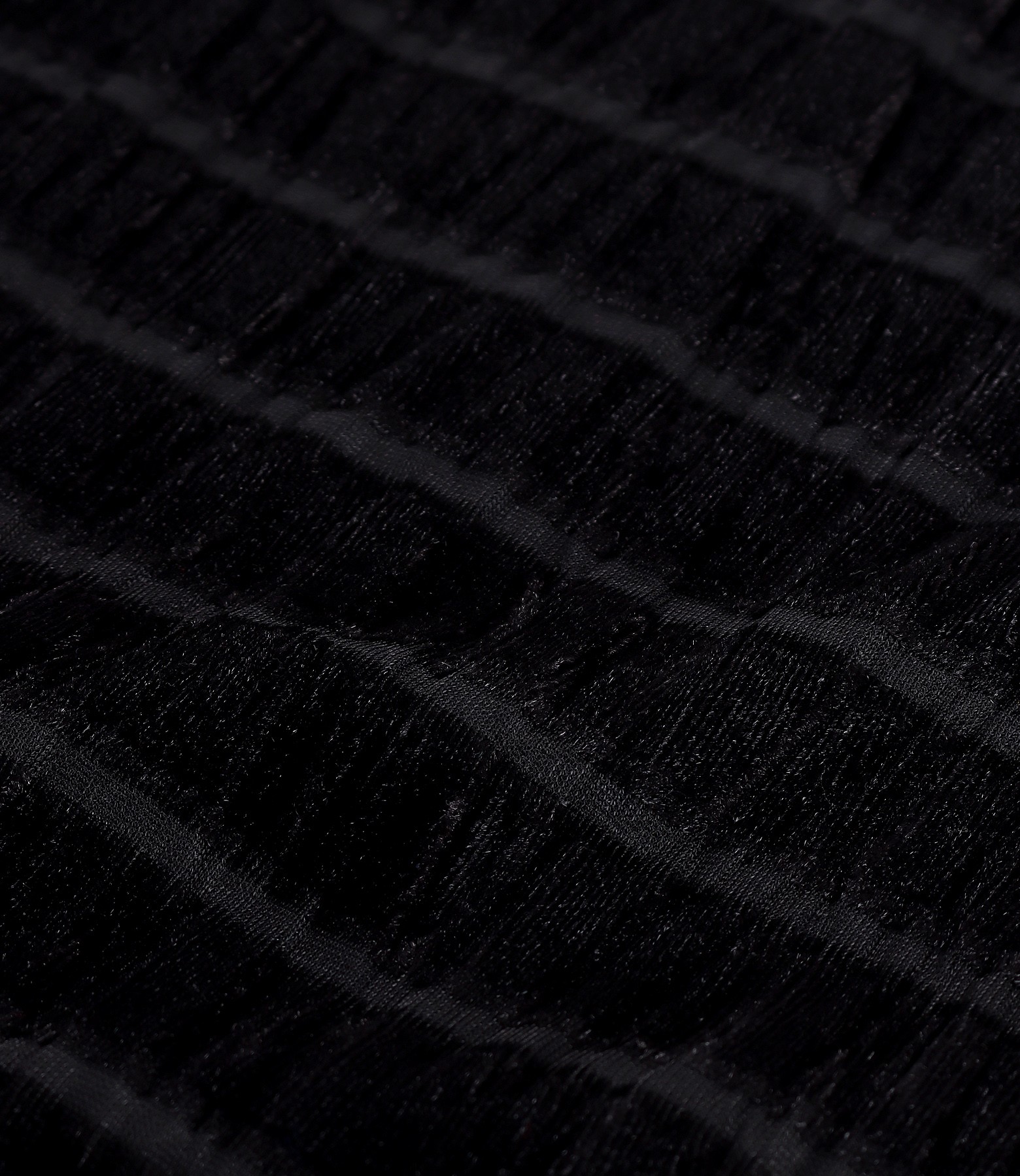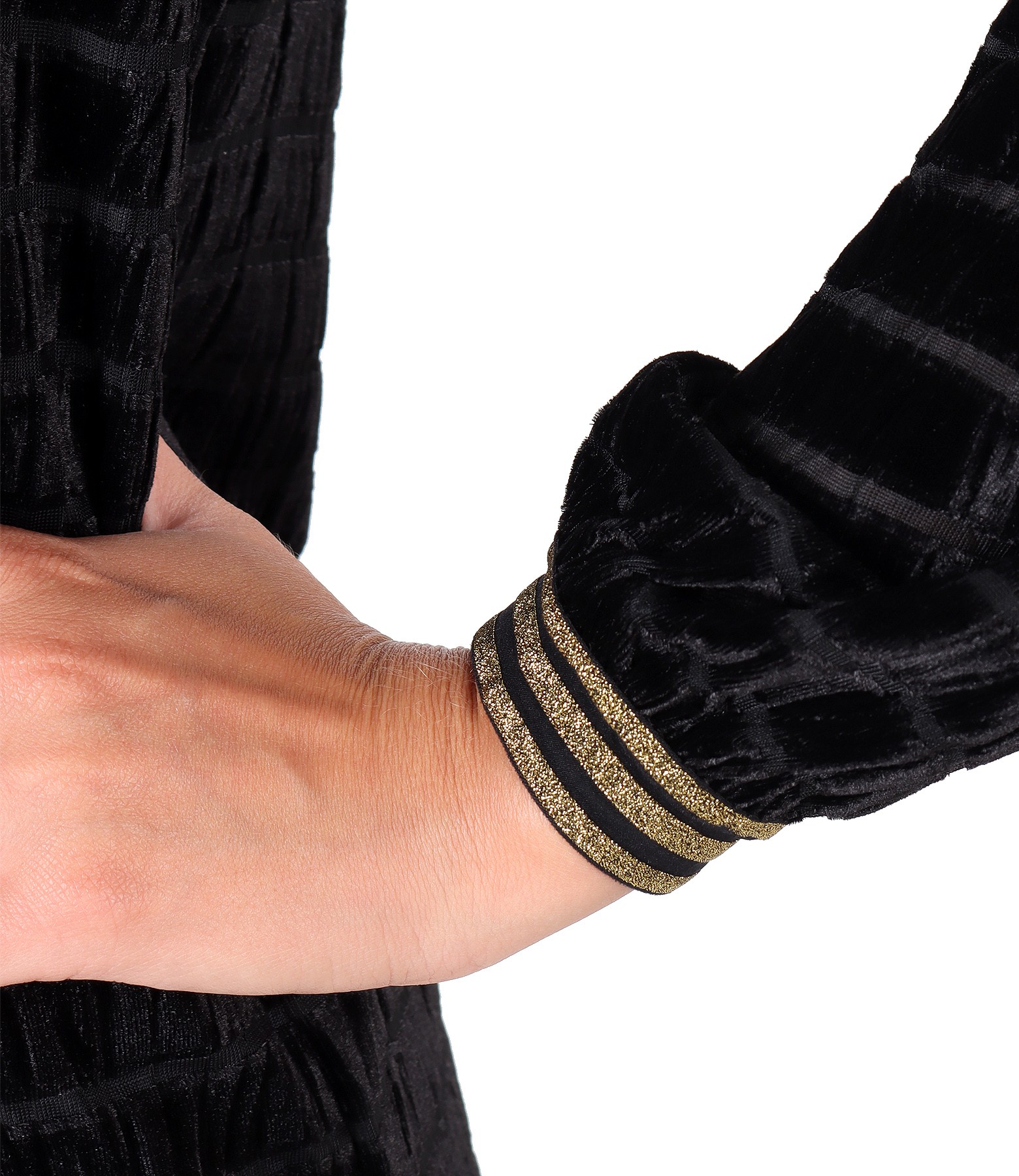 Striped velvet dress, doubled with viscose, with long sleeves, round decolletage and elastic at the ends.