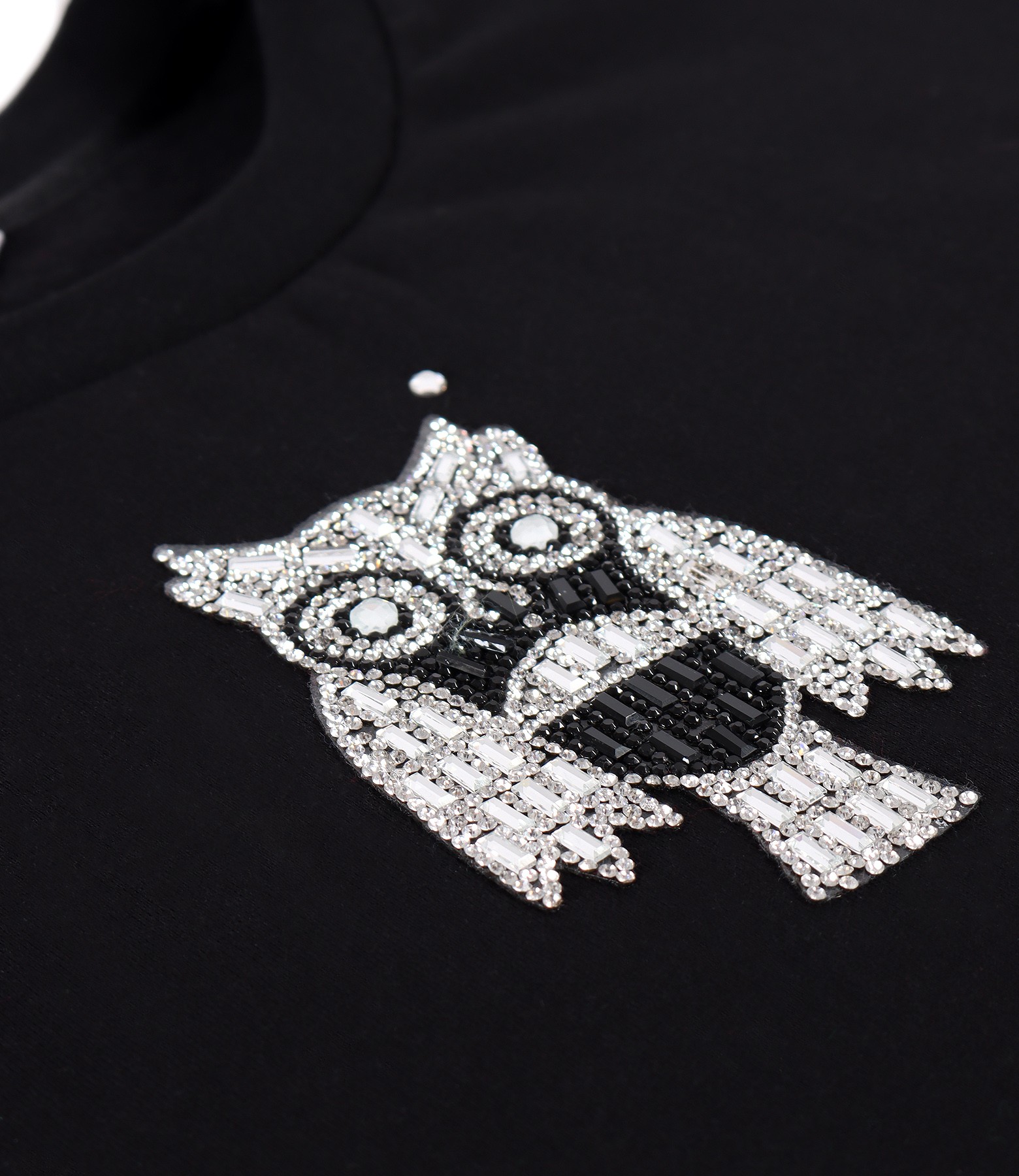 Sweatshirt dress made of cotton, with long sleeves, round decolletage and decorative application with crystals on the face.