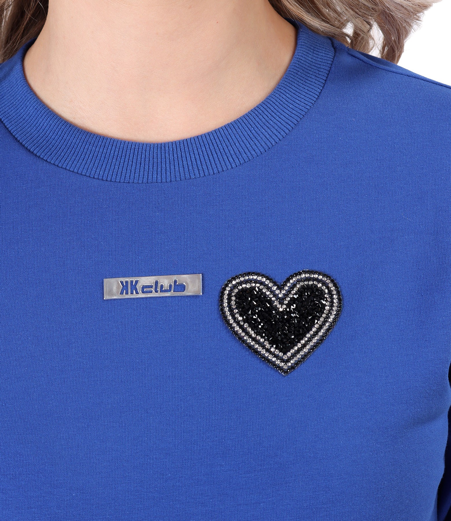 Sweatshirt dress made of cotton, with long sleeves, round decolletage and decorative application with crystals on the face.